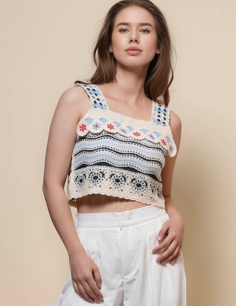 Ladies Square Neck Hollow Out Knit Vest SKT50134