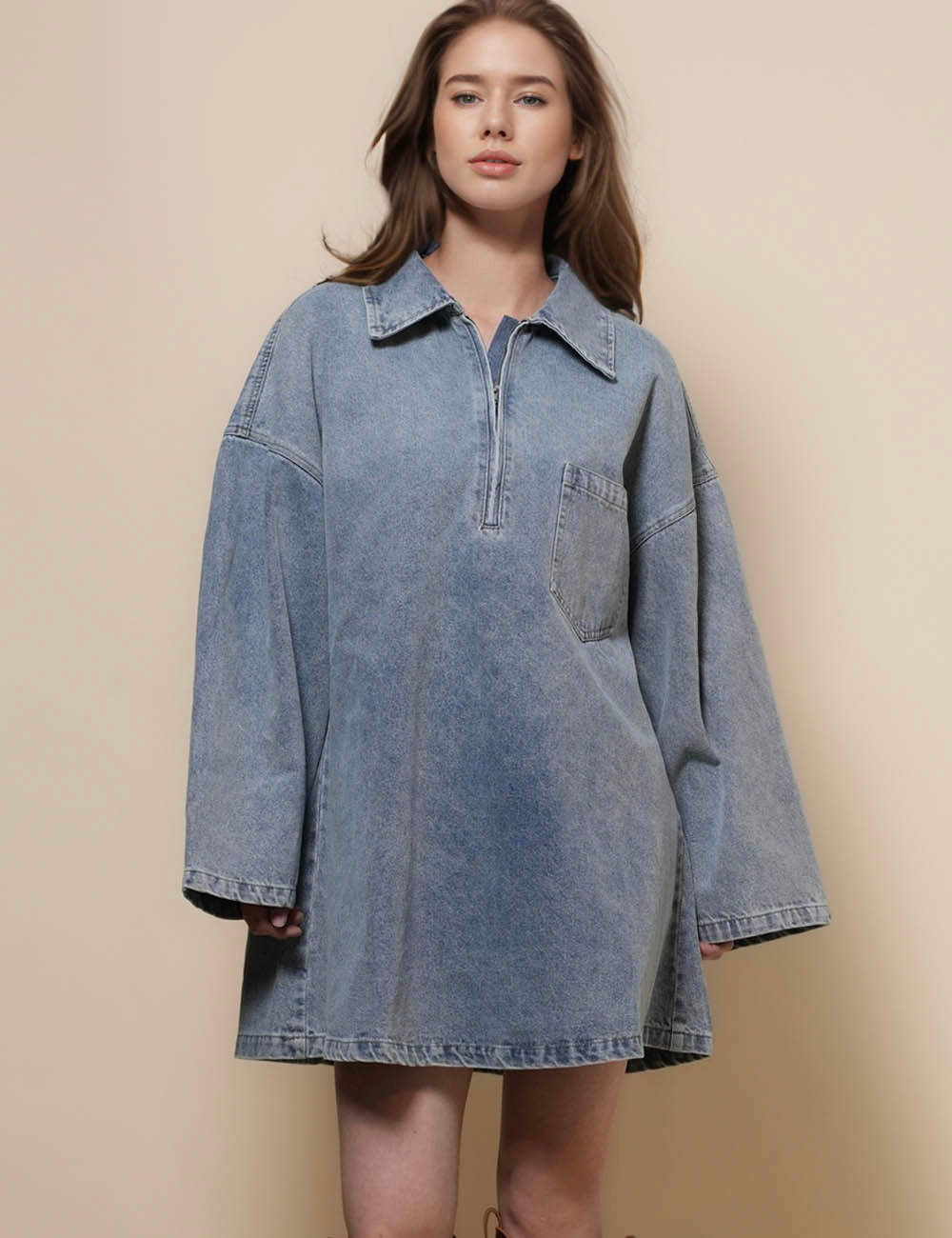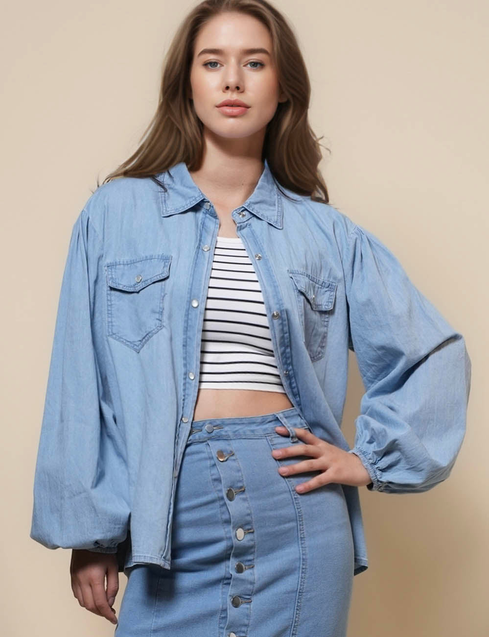 Ladies Long Sleeves Button Down Denim Shirt SKT50118
