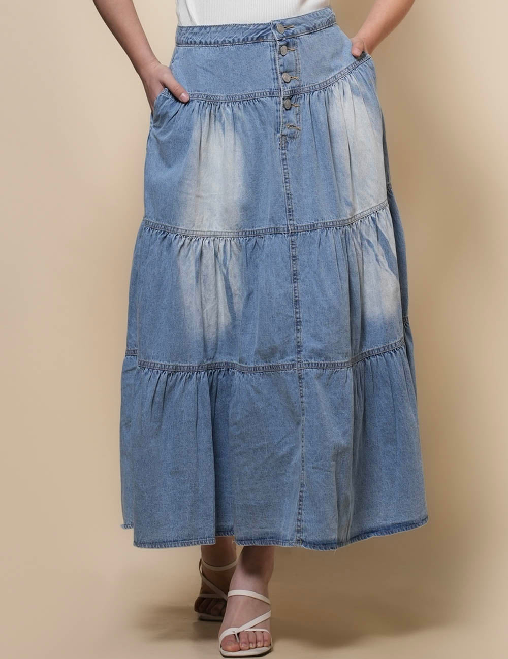 Features: * Ladies Denim Skirt * Polyester and Cotton * Fabric No Stretch * Solid...