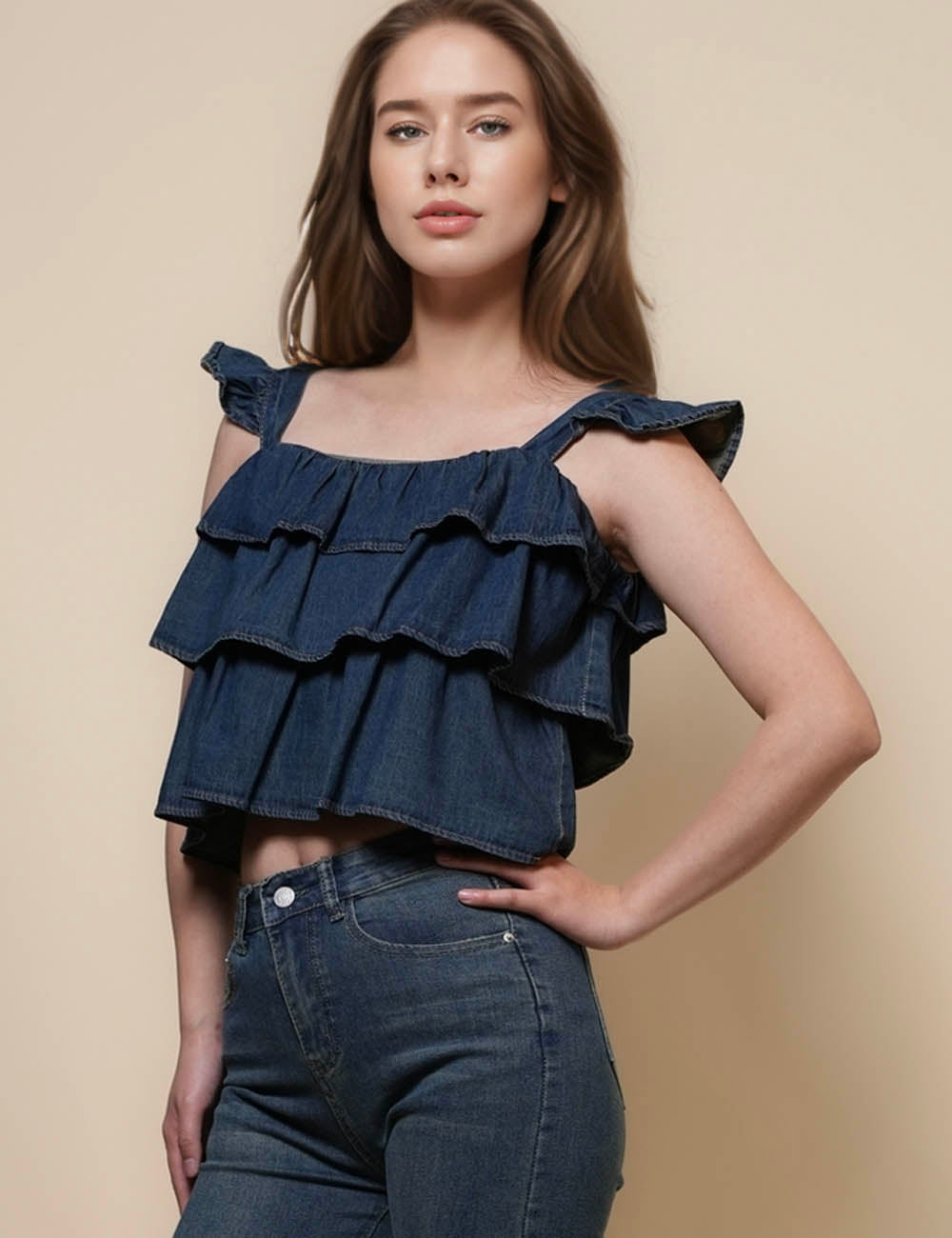 Features: * Ladies Denim Top * Polyester and Cotton * Fabric No Stretch * Solid...
