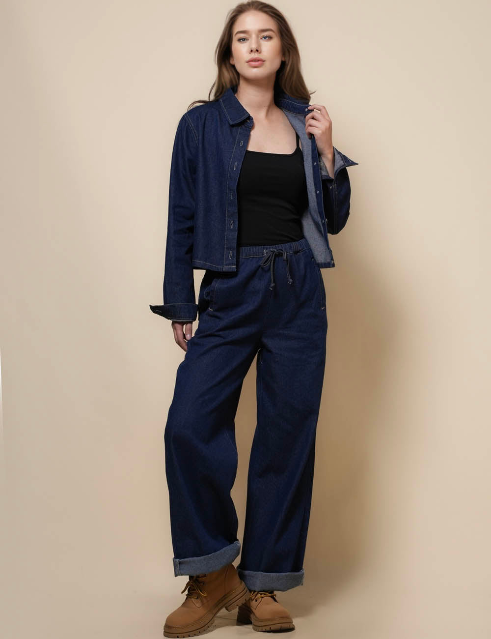 Ladies Turndown Collar Shirts & Pants Denim Set SKST50099