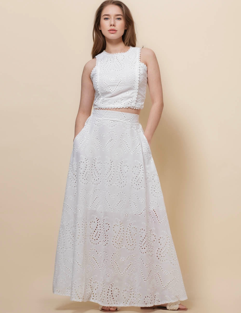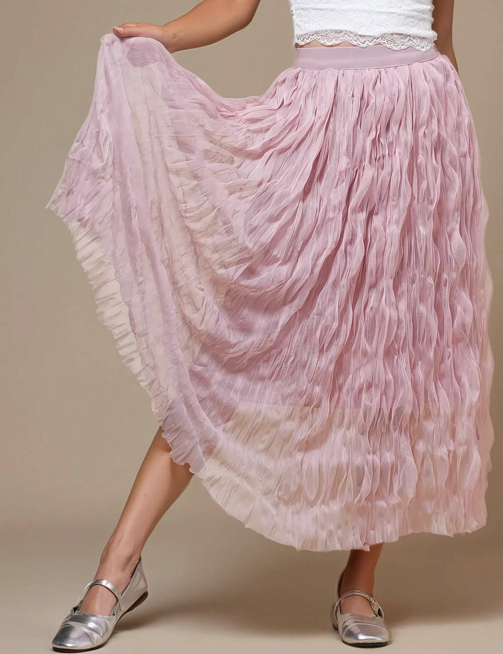 Ladies Elastic Waist Gauzy Midi Skirt SKS50449