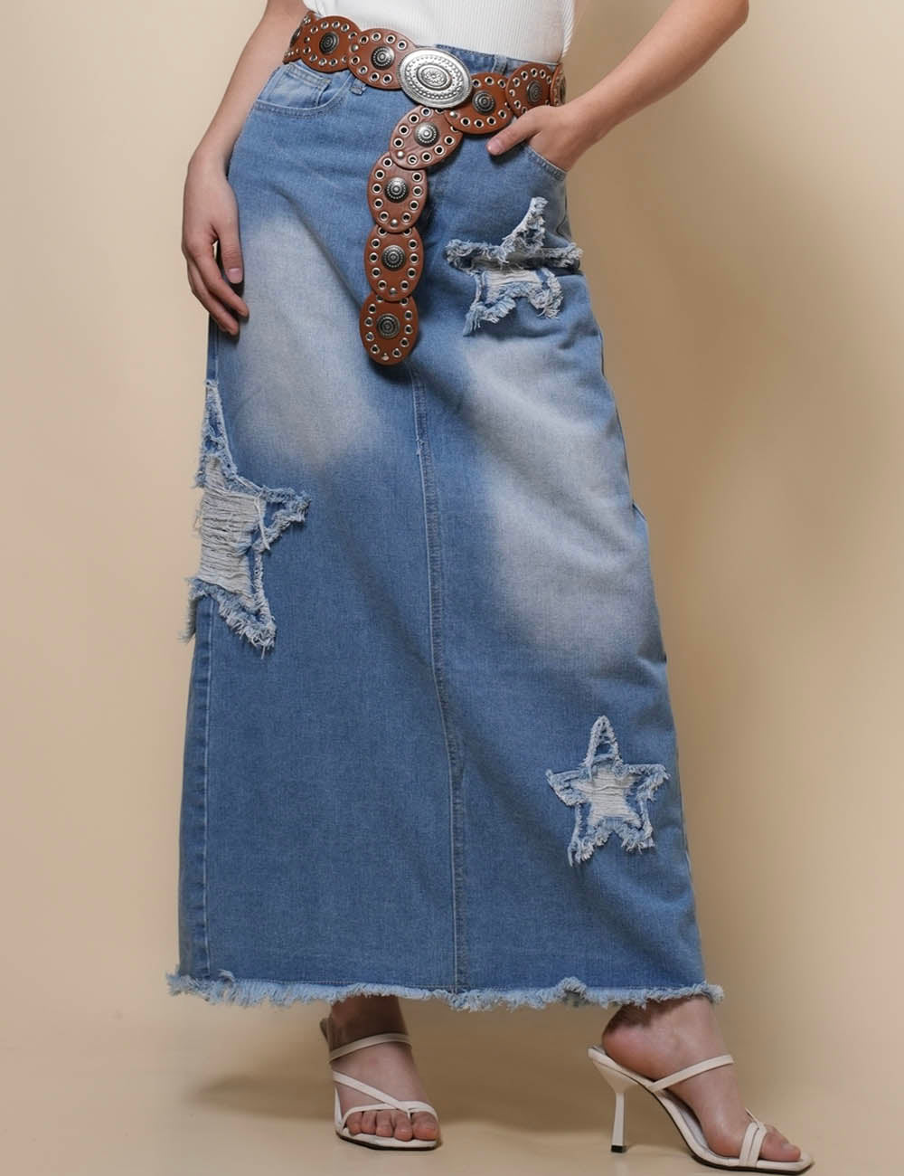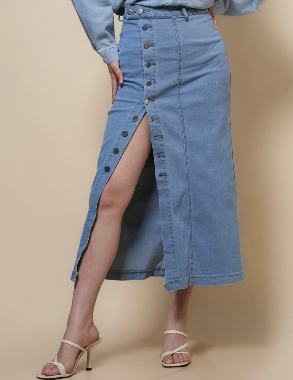 Ladies Botton High Waist Split Denim Skirt SKS50106