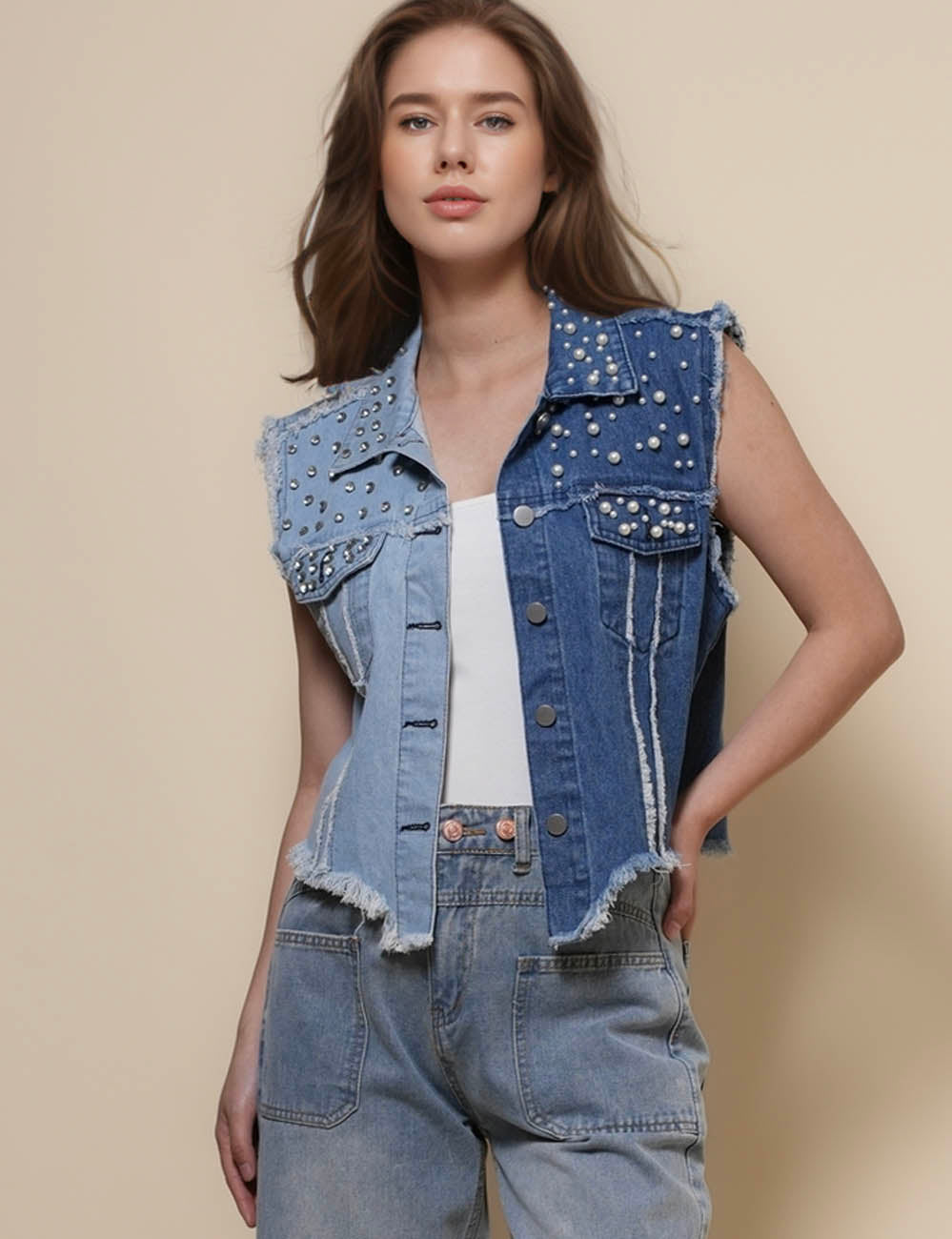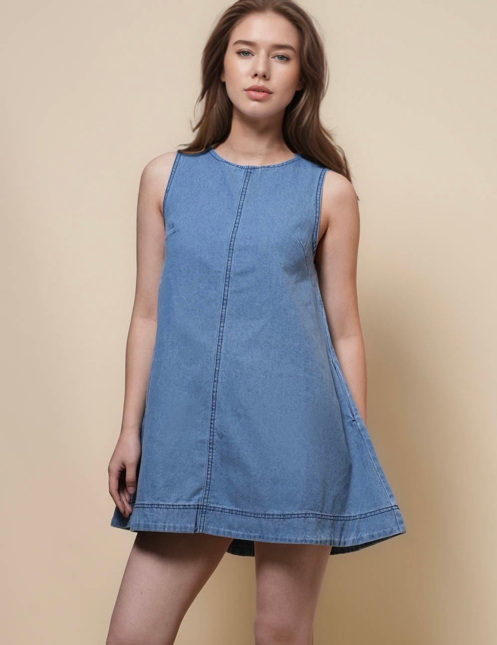 Ladies Sleeveless Back Cut Out Denim Mini Dress SKD50014