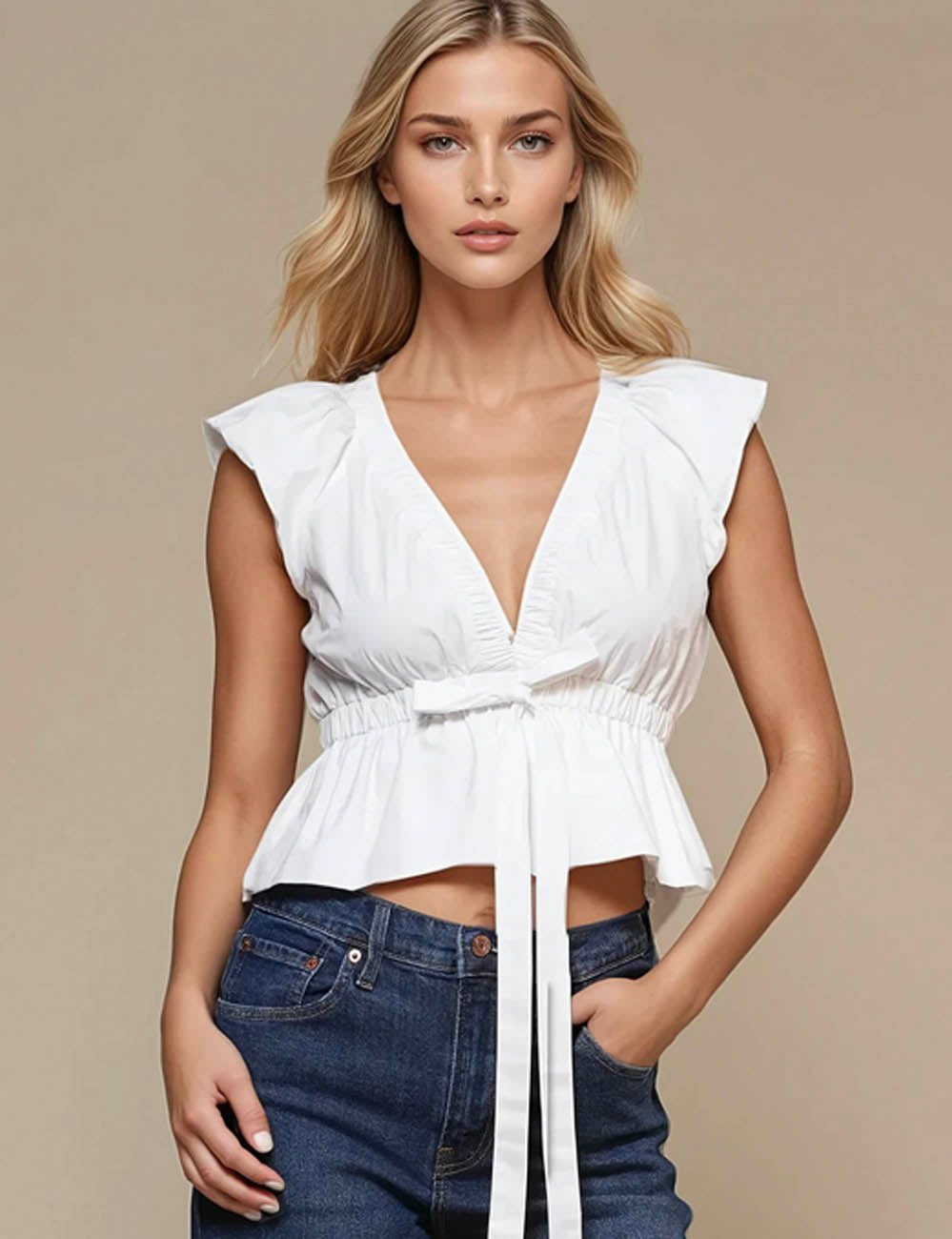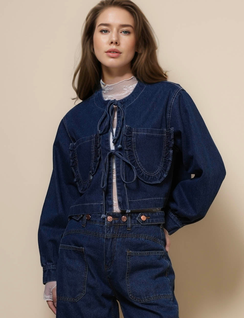 Ladies Long Sleeves String Tie Denim Jacket SKT50046
