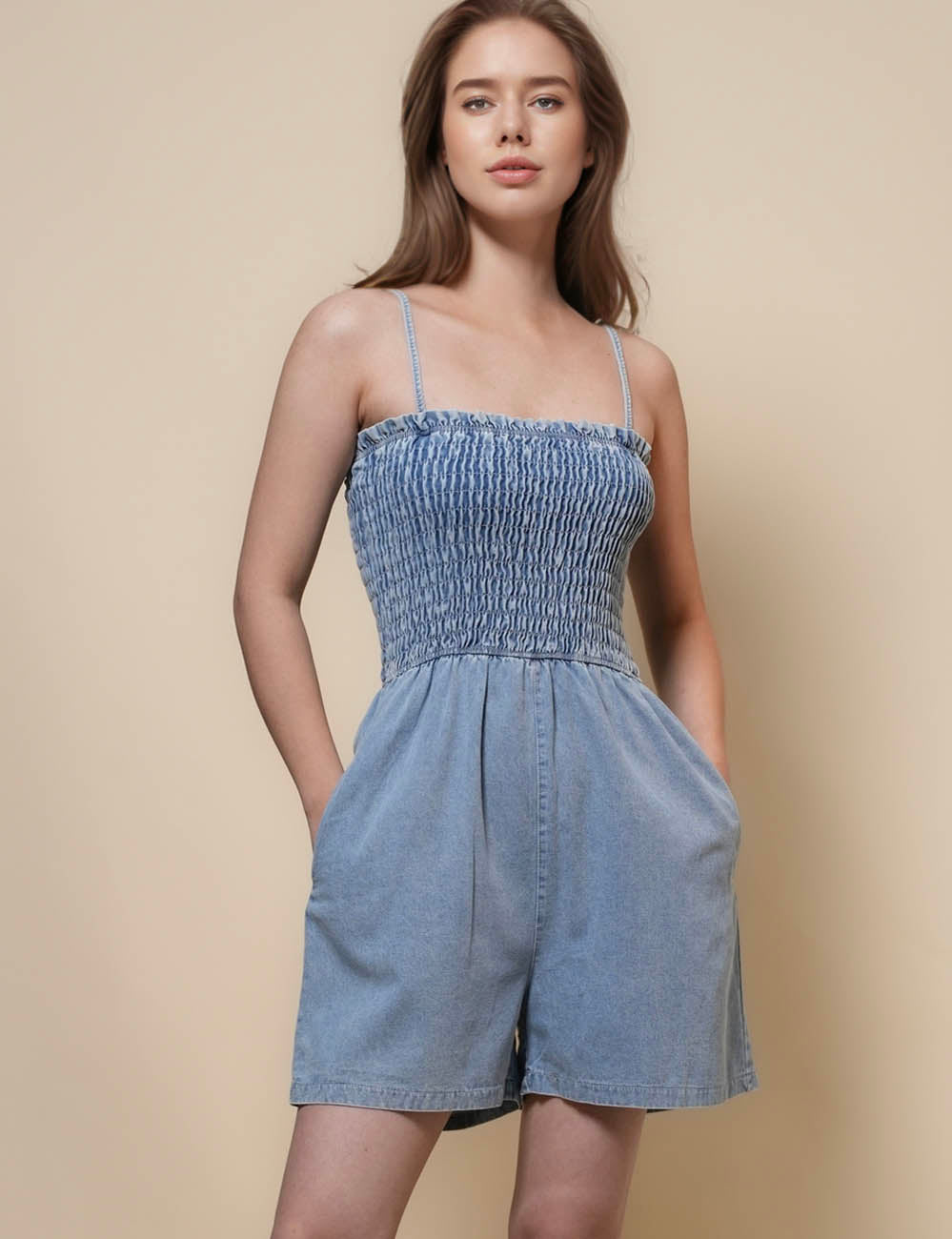 Ladies Bottons Adjustable Strape Shoulder Romper SKJ41312