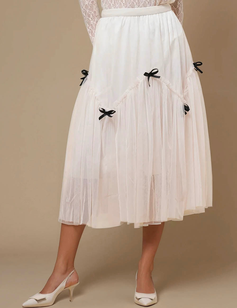 Ladies Gauzy Tiny Bowknot Elastic Waist Midi Skirt SKS50450A