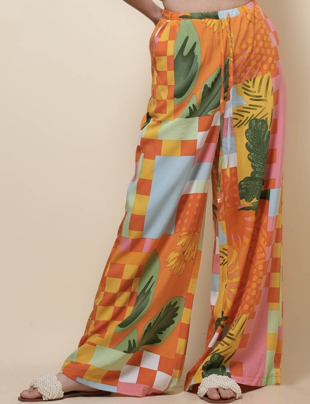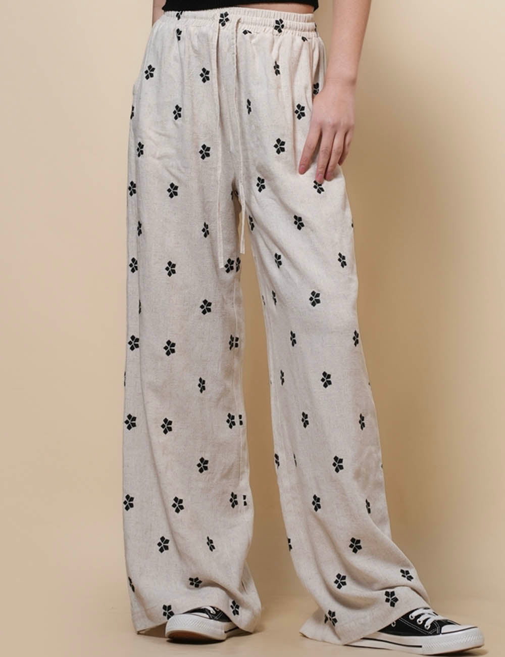 Ladies Elastic Waist Print Wide Leg Pants SKP51019