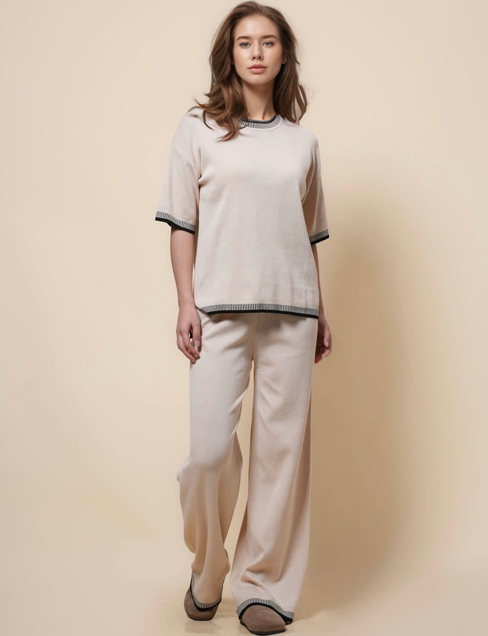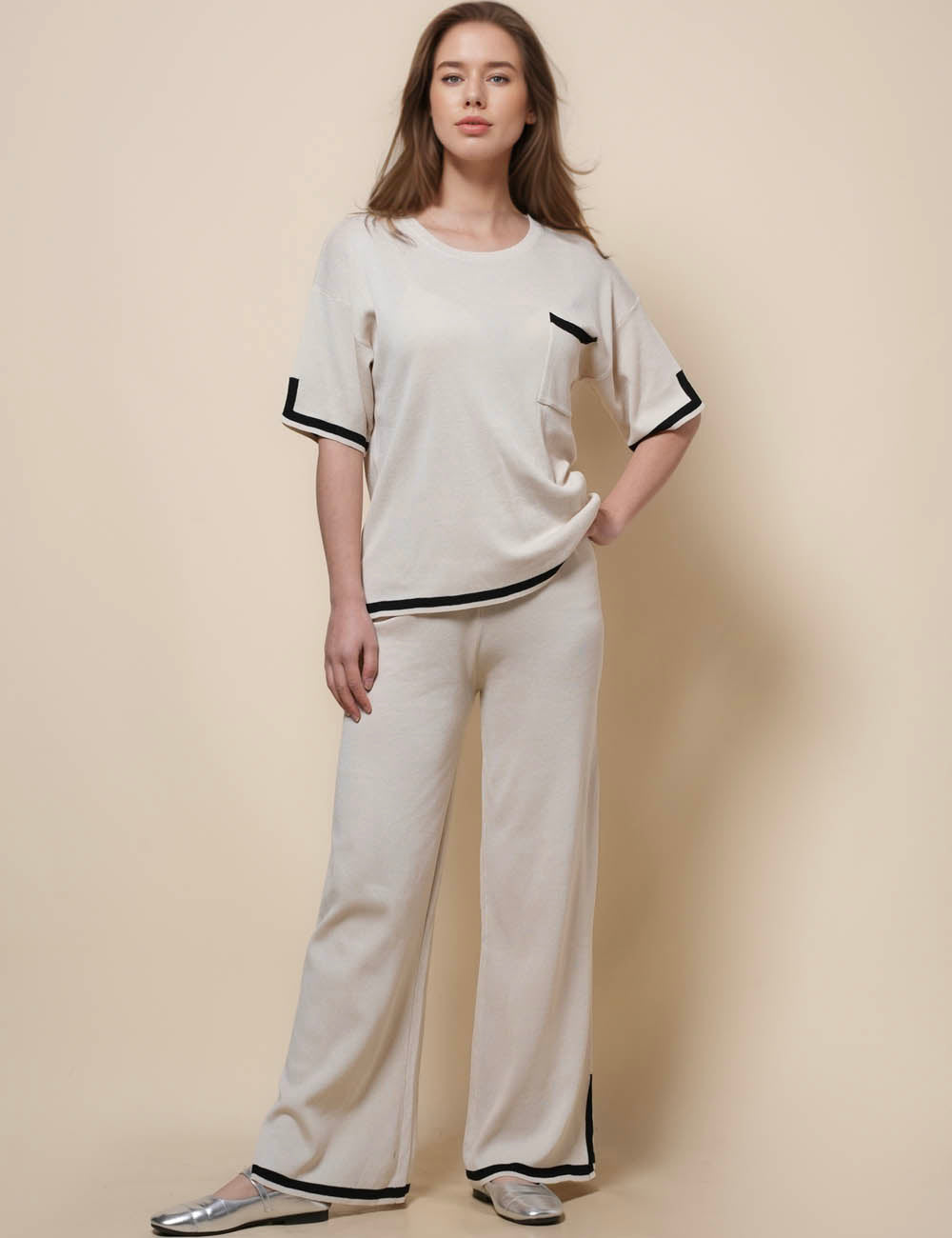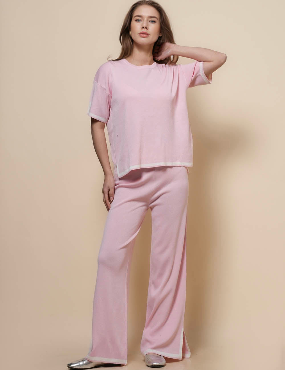 Ladies Color Block 2PCS Knit Loungewear Set SKST50650