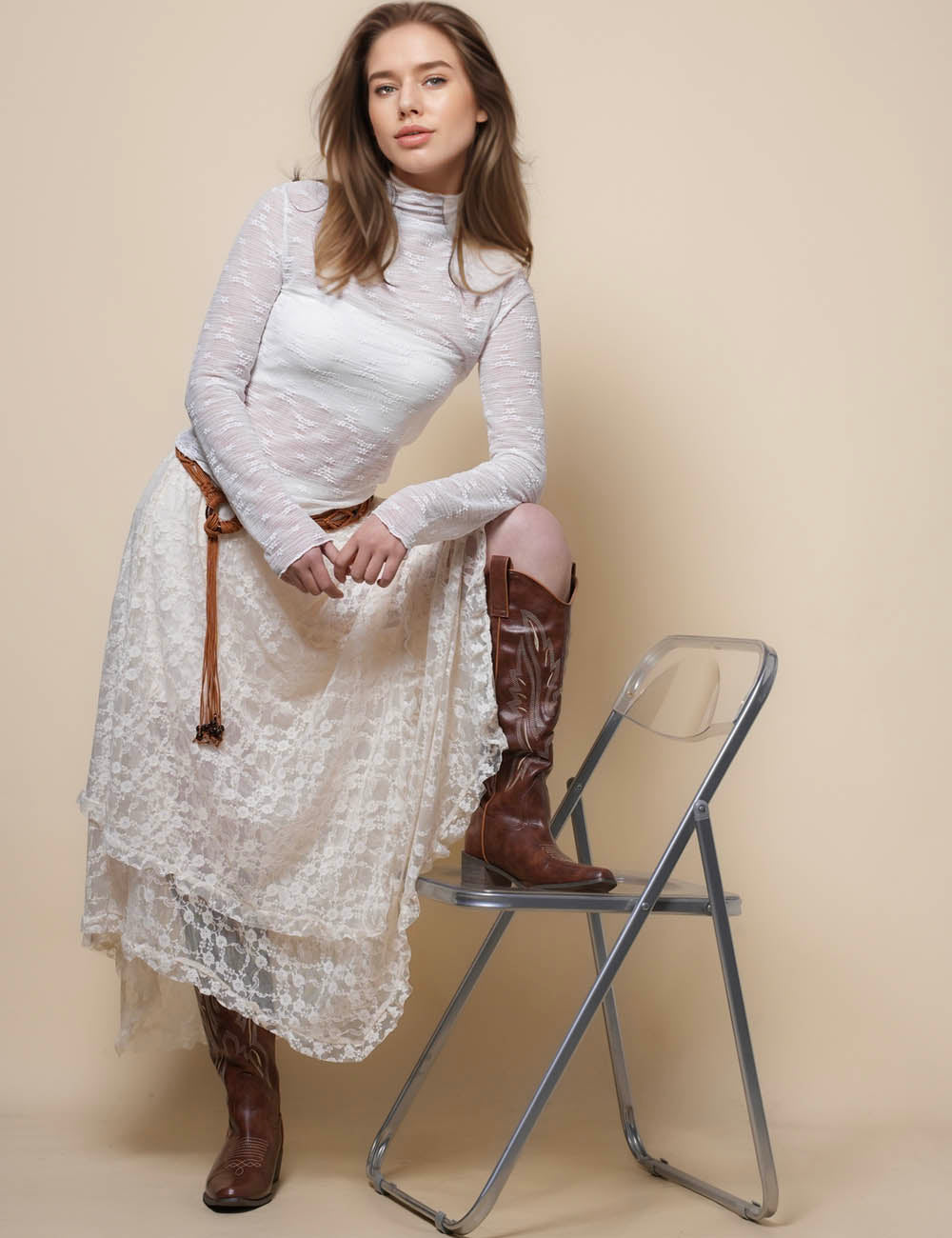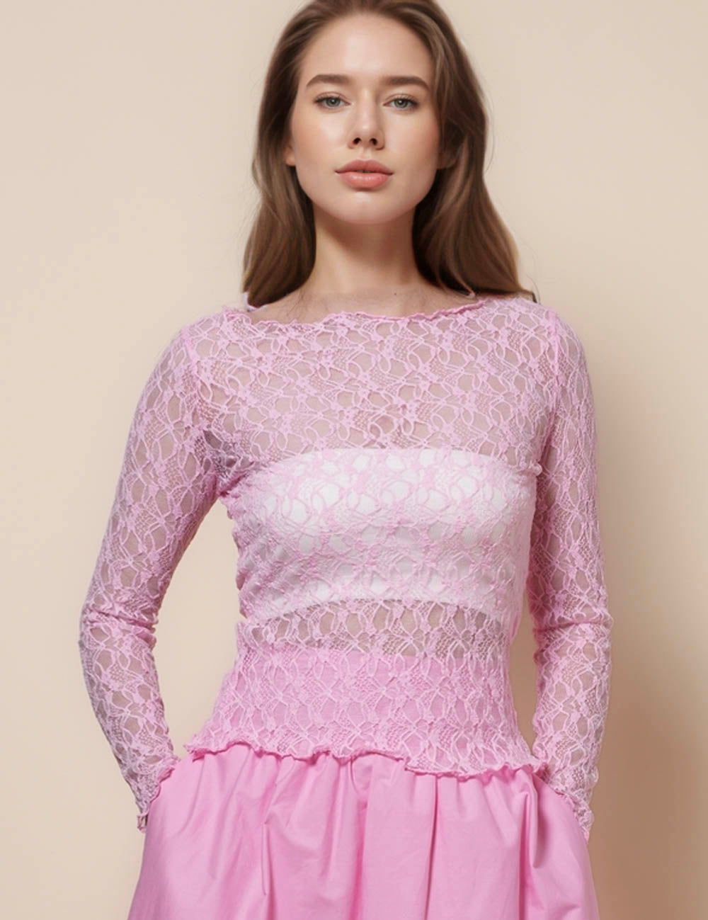 Ladies Baby Lock Neck Lace See Sheer Layring Top SKT41290