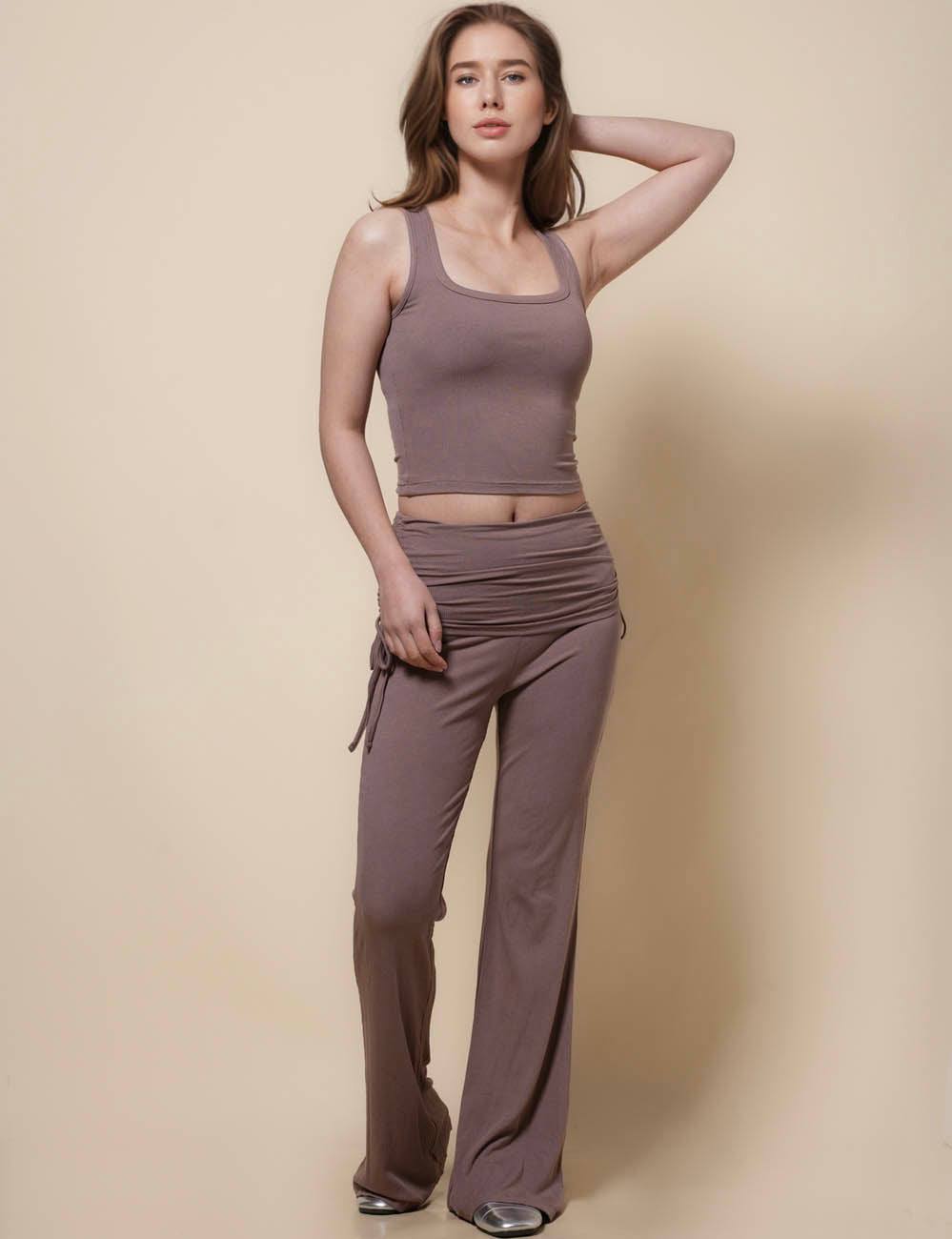Ladies U-Neck Top Pants 2PCS Lounge Set SKST41223