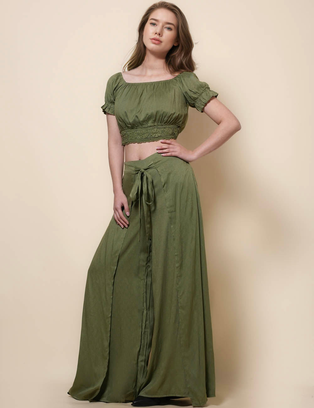 Ladies Square Collar Top Maxi Skirt 2PCS Set SKST41291