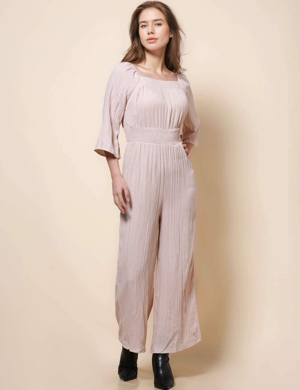 Ladies Square Collar Long Sleeves Wide Leg Romper SKJ41280