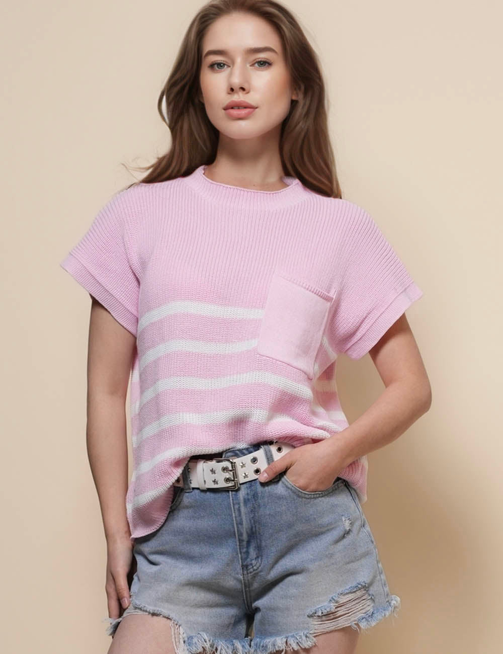 Ladies Hallow Out Top Shorts 2PCS Knirt Set SKST50174