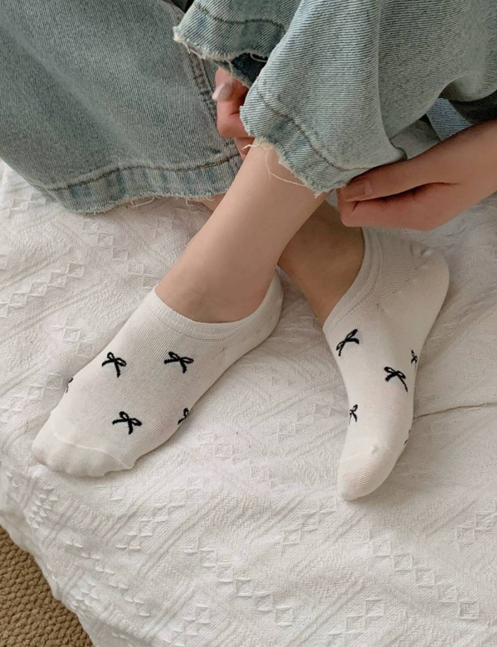 Ladies Tiny Bow Knit Everyday Boat Socks SKAS50001