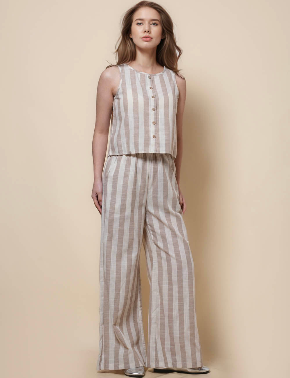 Ladies Sleeveless Top with Pants 2PCS Set SKST41282