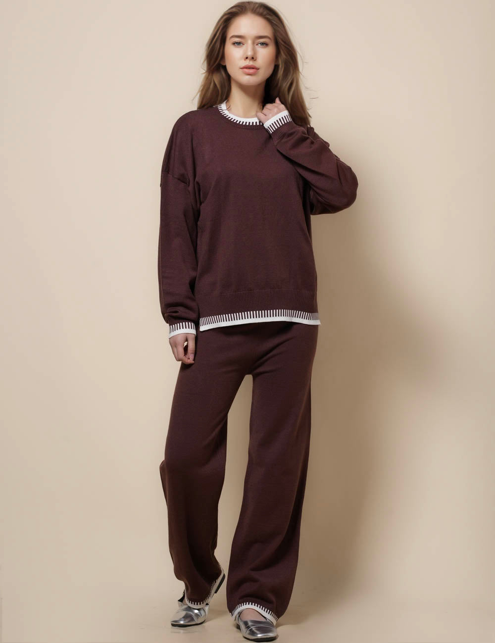 Ladies Pullover Sweater Pants 2PCS Loungewear Set SKST41231