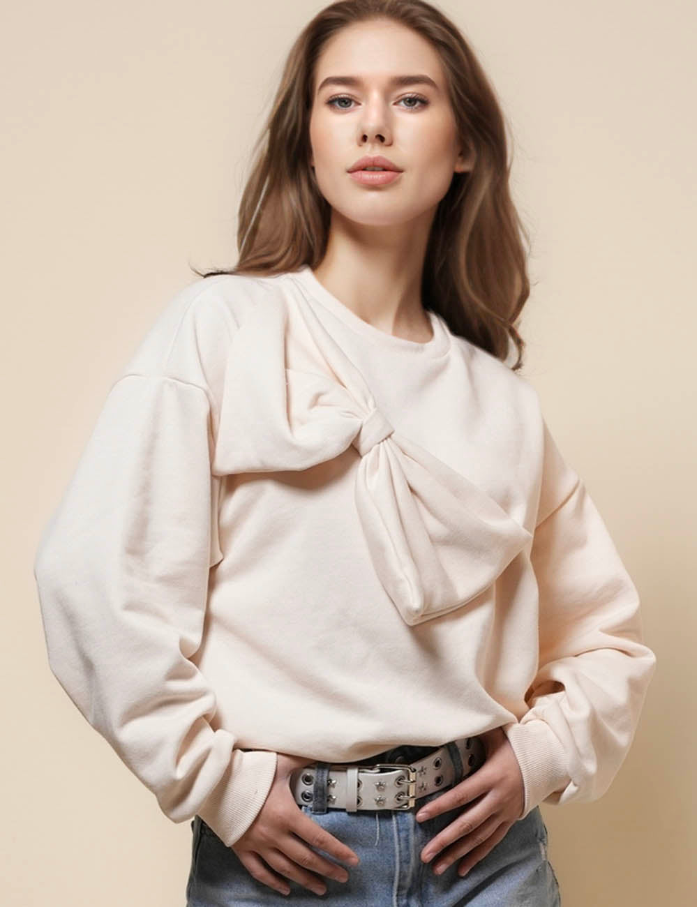 Ladies Round Neck Long Sleeves Pullover Sweater SKT41154