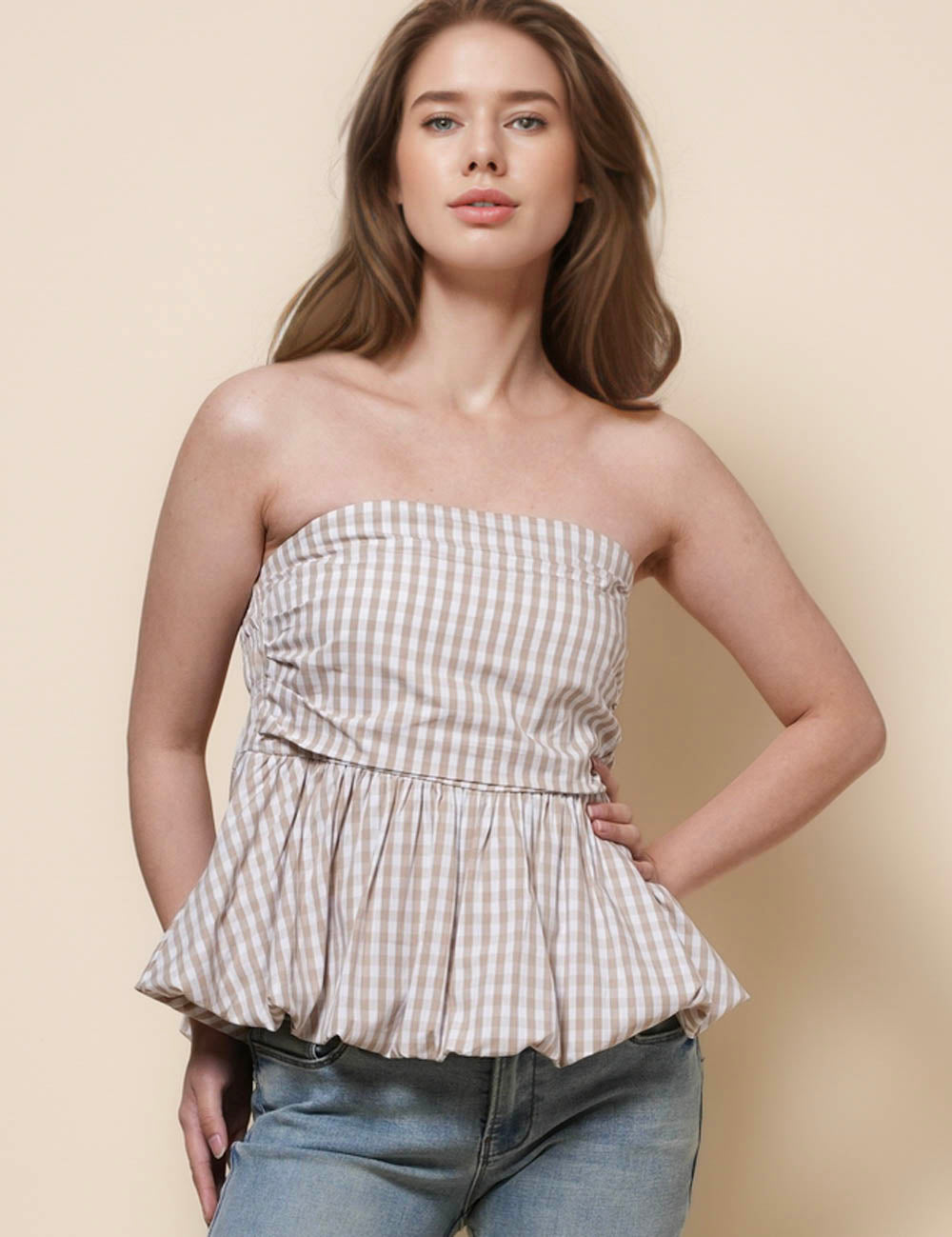 Ladies Strapless Color Block Plaid Tube Top SKT41292