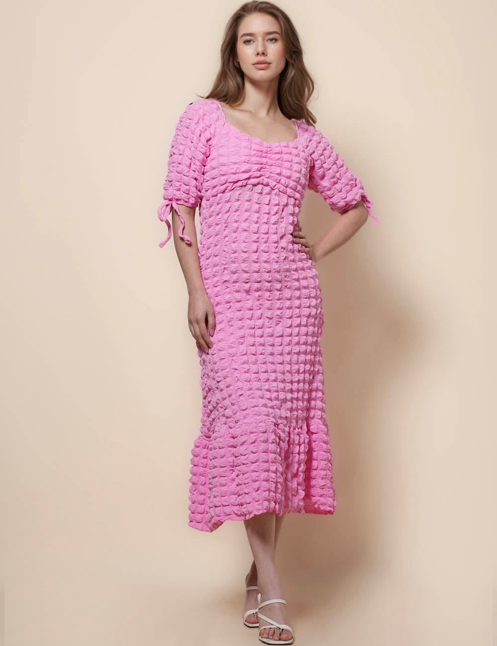 Ladies Square Collar Puff Sleeves Midi Dress SKD50224