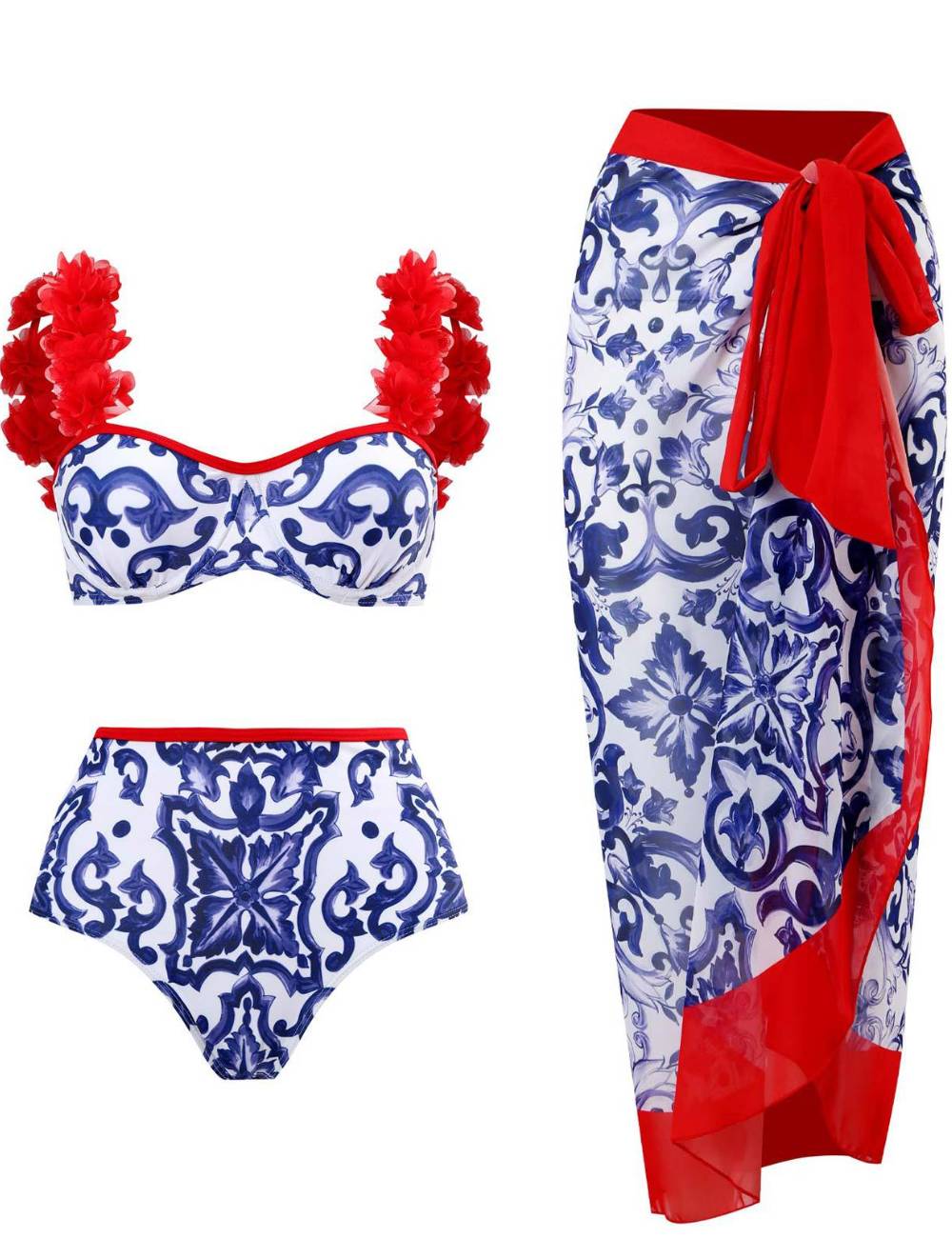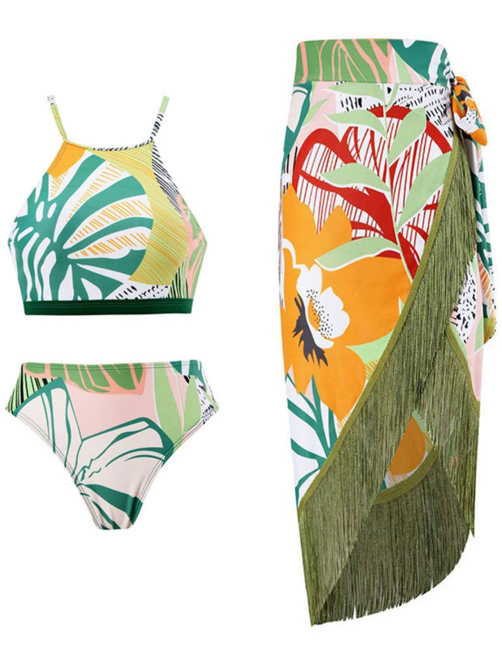 Ladies AB Side Floral Bikini Set with Salong SKSW40135