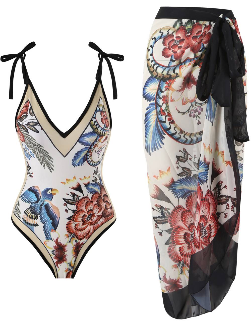 Two String Shoulder Floral Cover Swimsuit SKSW40144