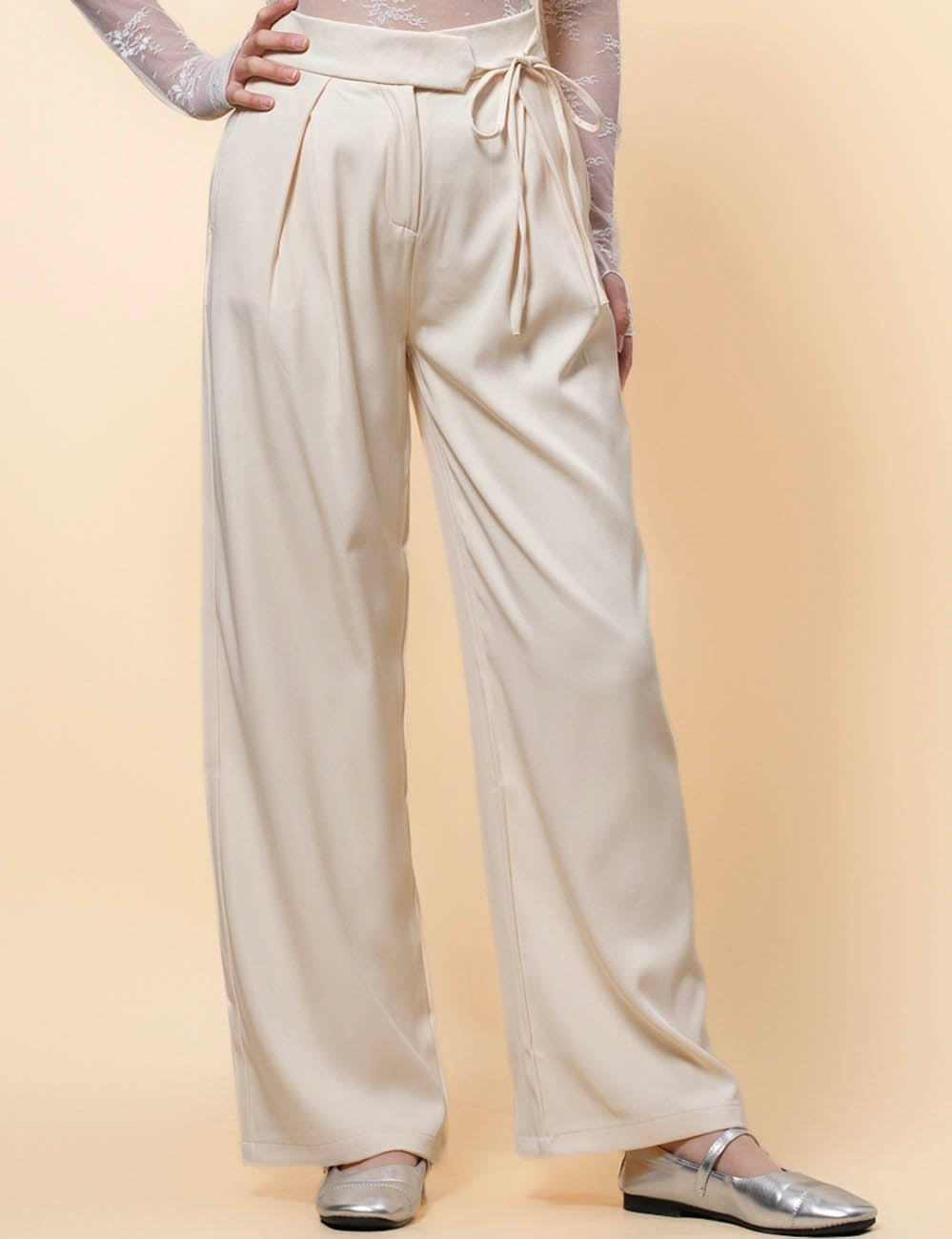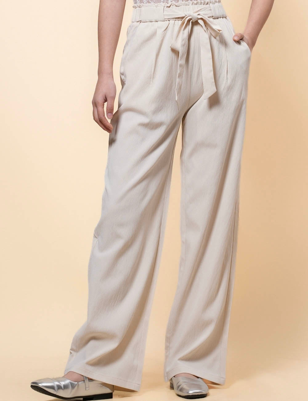 Ladies Elastic Waist Strape Tie Wide Leg Pants SKP41201