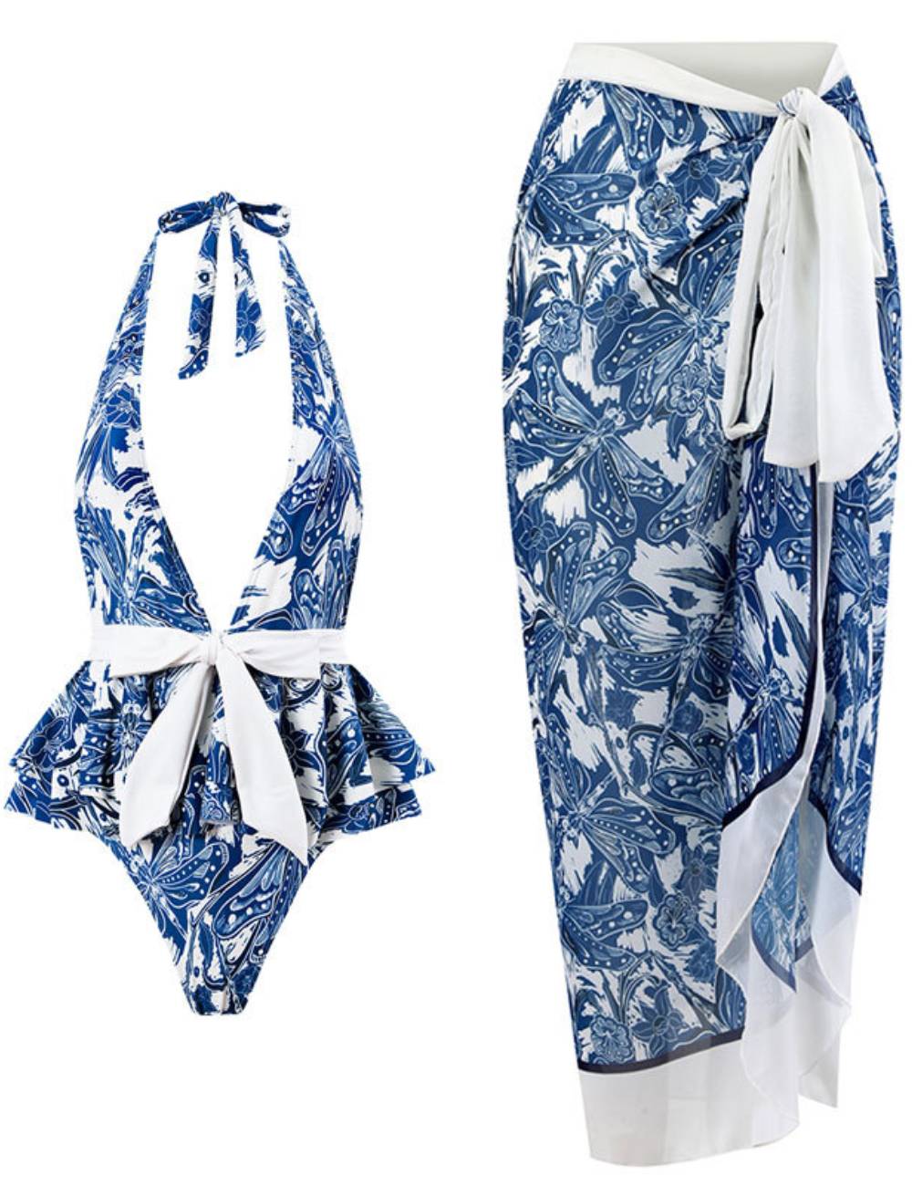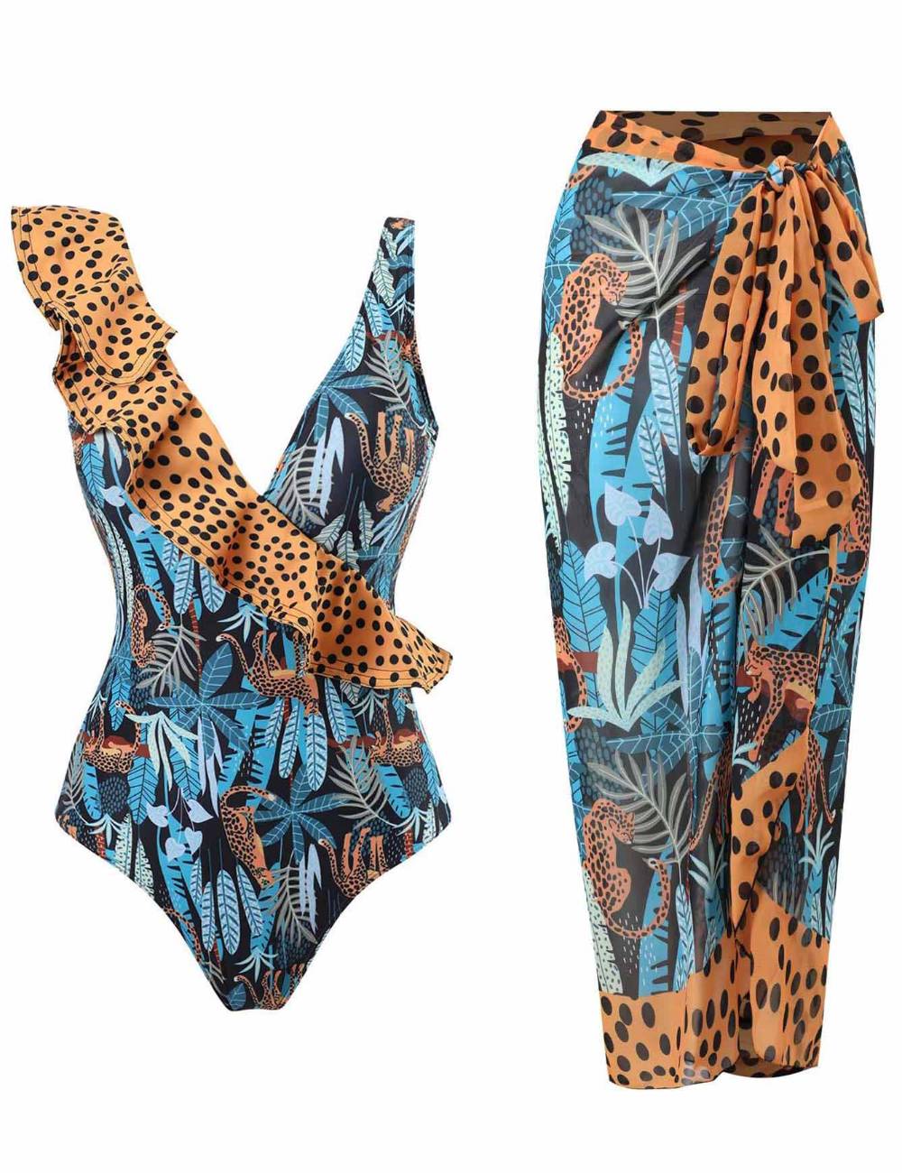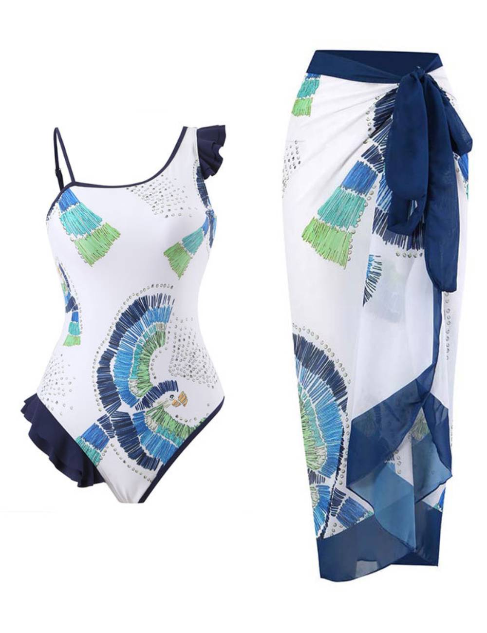 Ladies Print One Piece Swimwear with Cover SKSW40136
