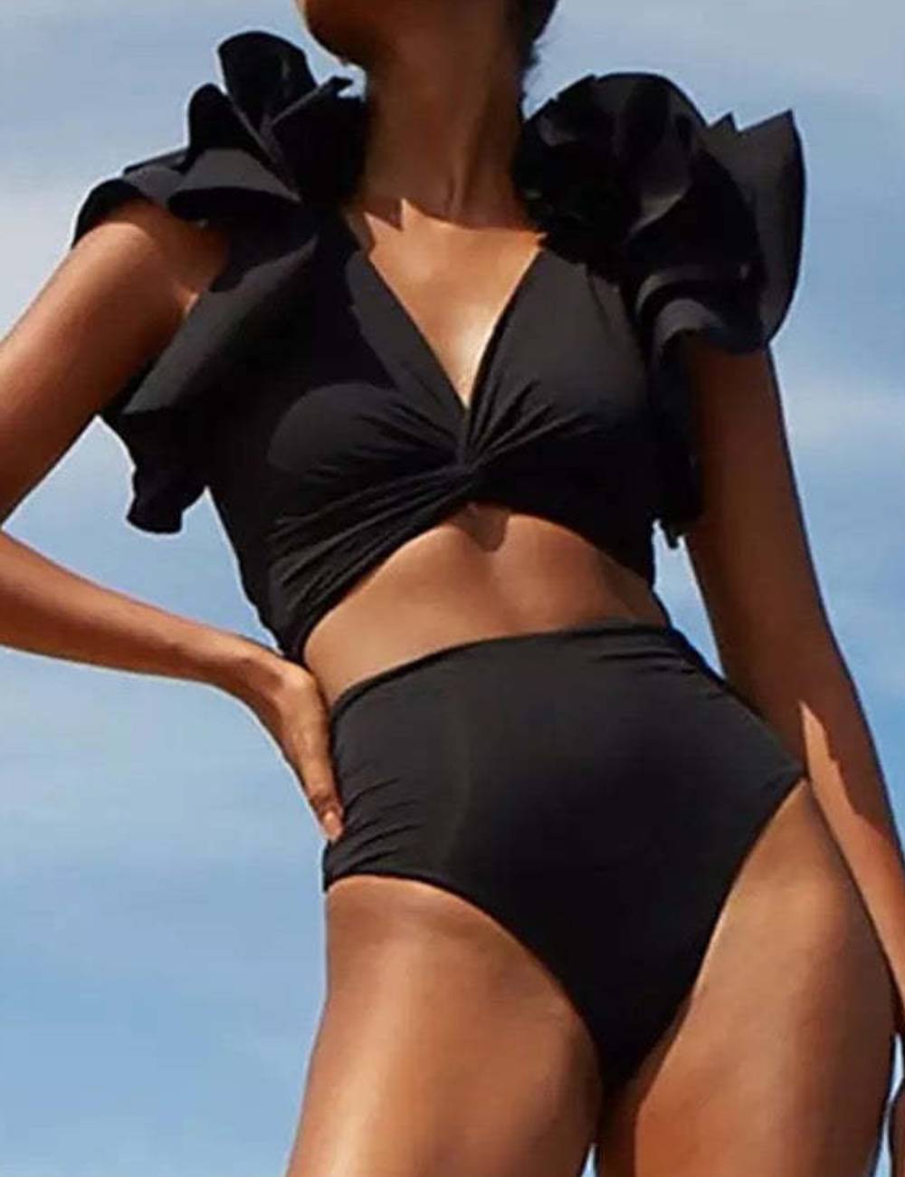 One Ruffle Shoulder One Piece with Cover SKSW40128