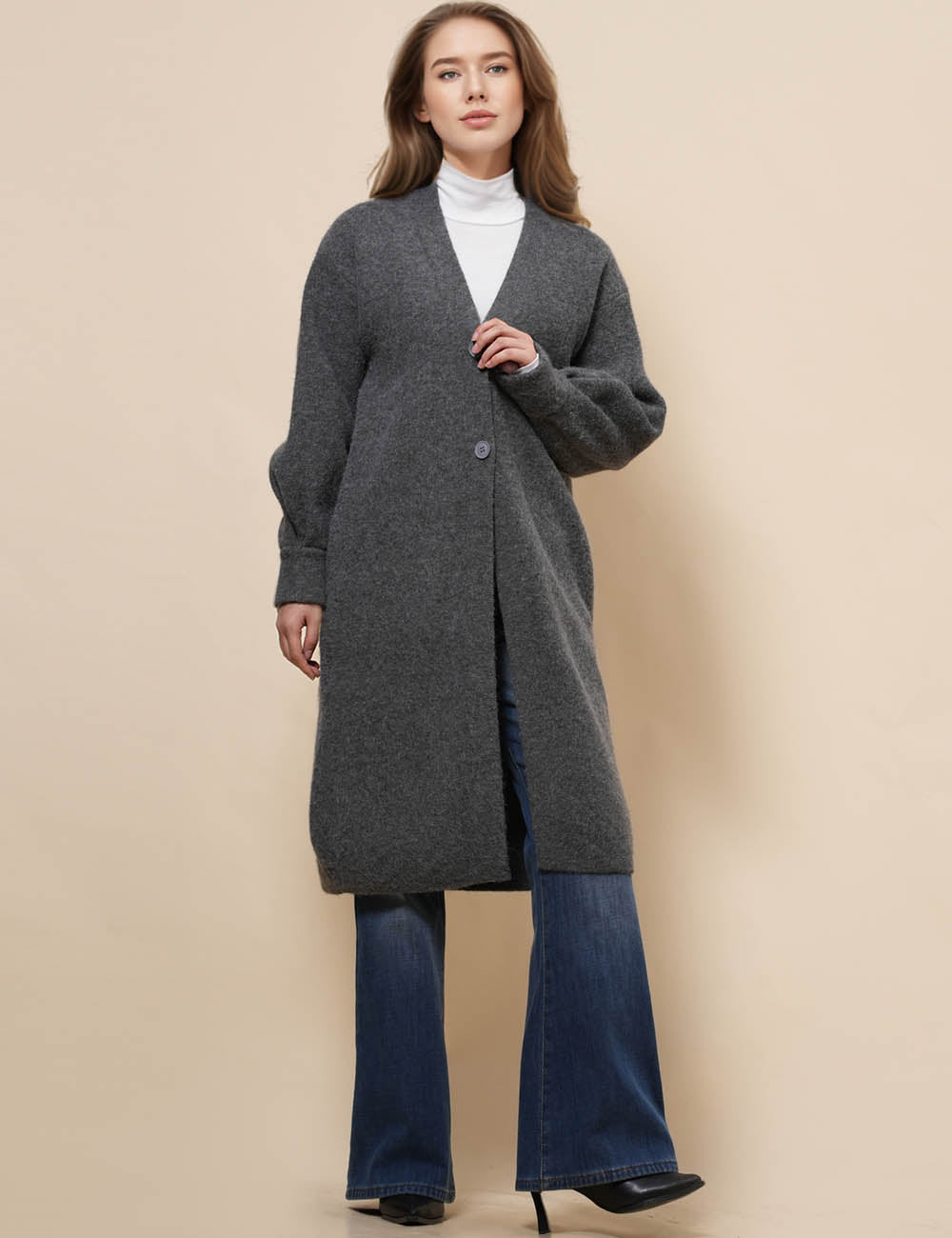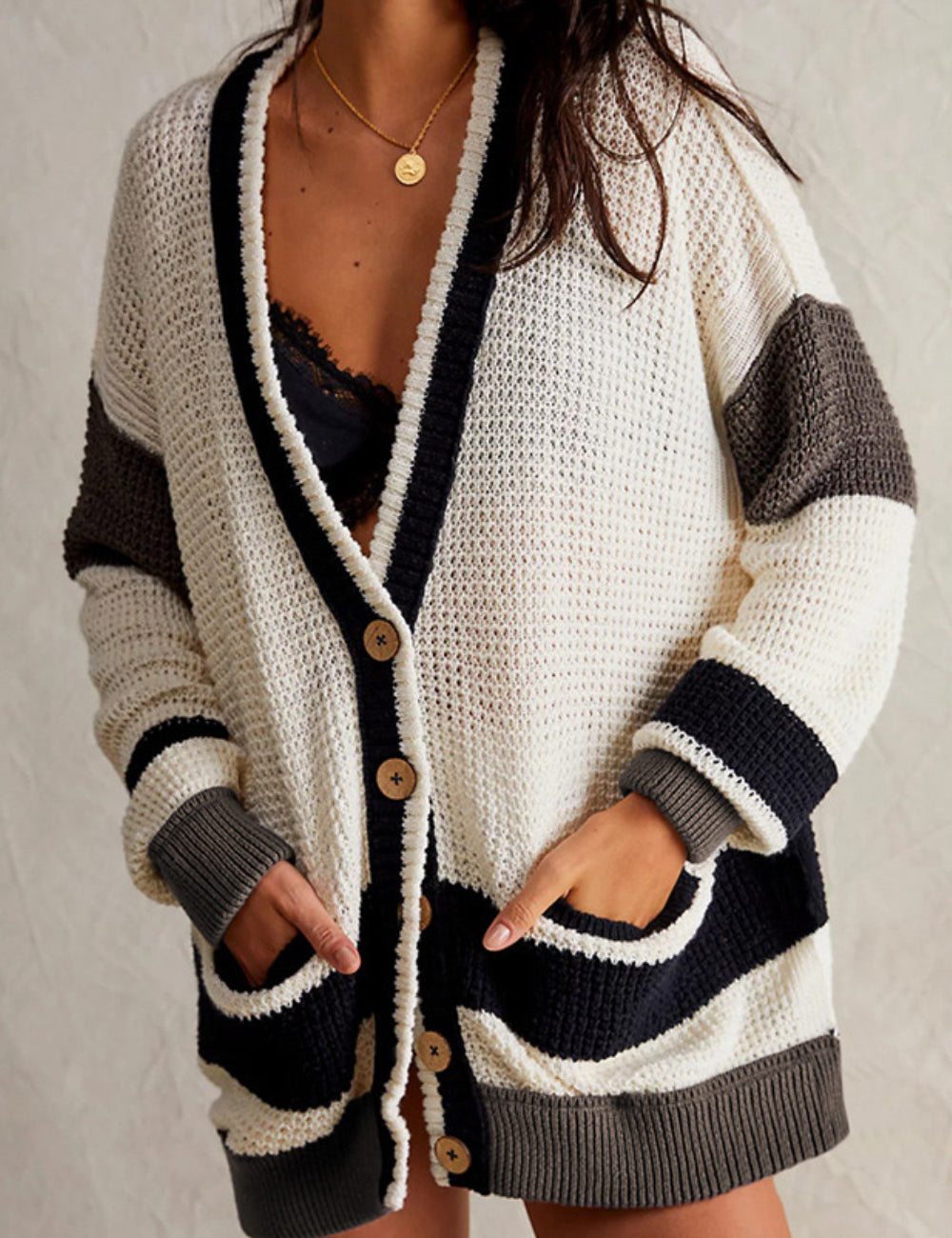Ladies Solid Color Botton V-Neck Cardigan SKT41089