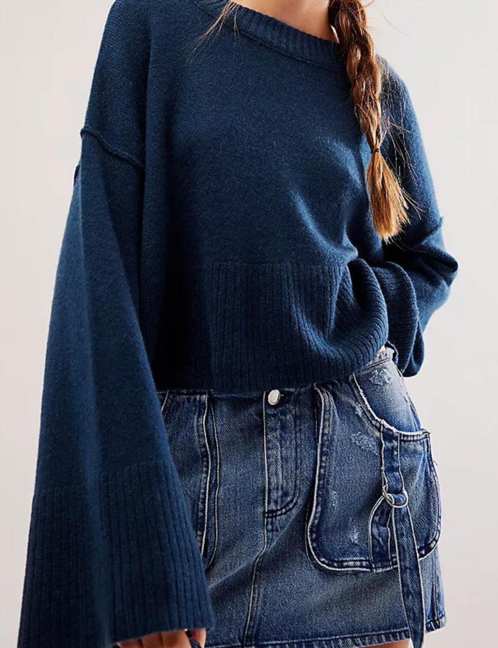 Ladies Solid Color Flare Sleeves Pullover Sweater SKT41168