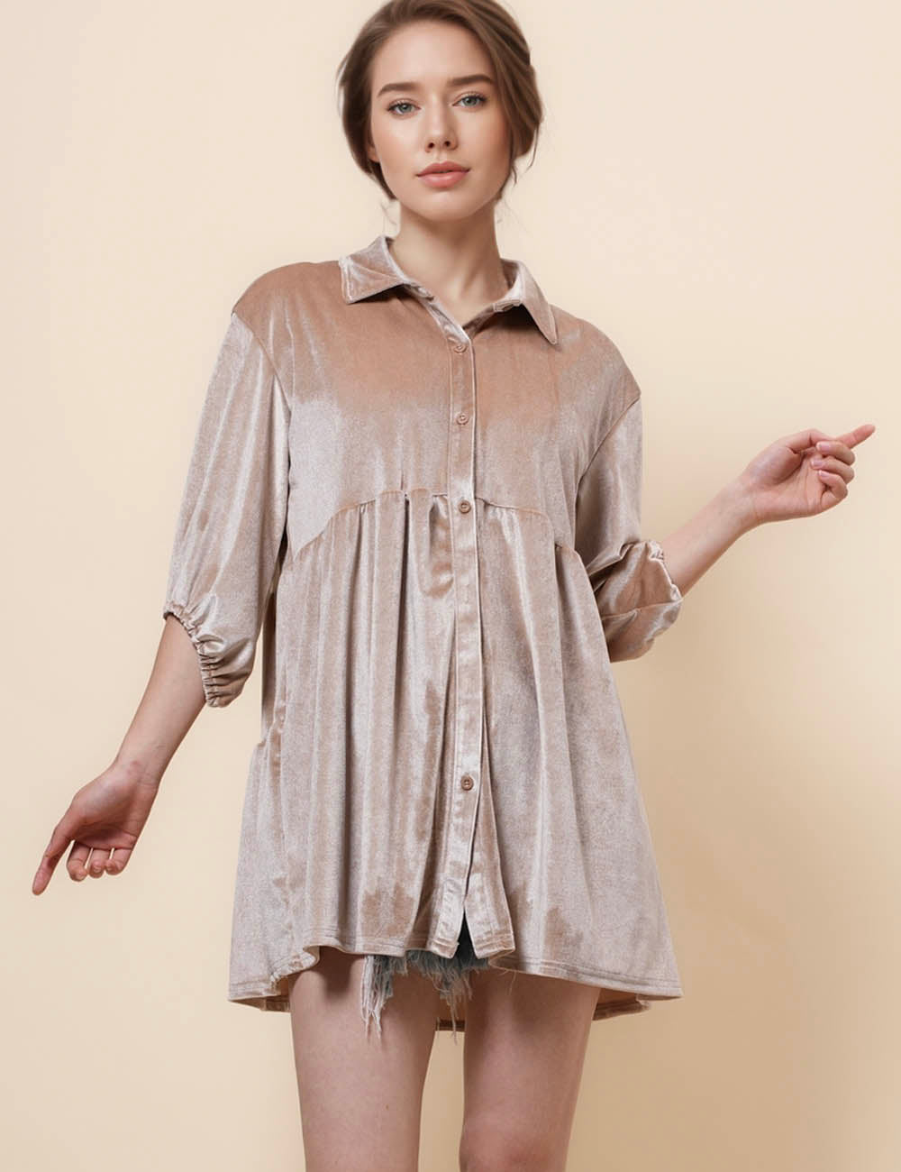 Ladies Half Sleeves Velvet Botton Blouse SKT41093