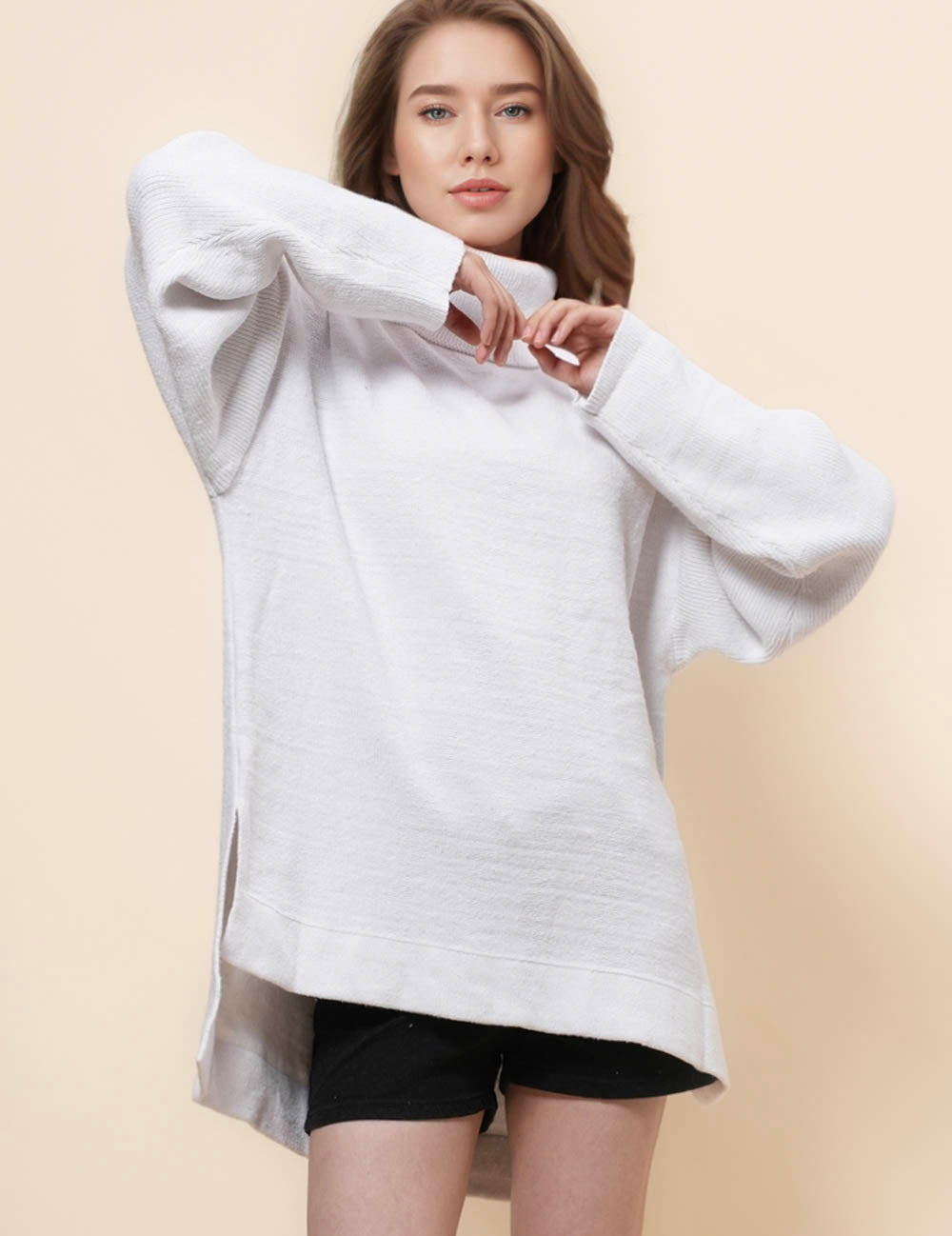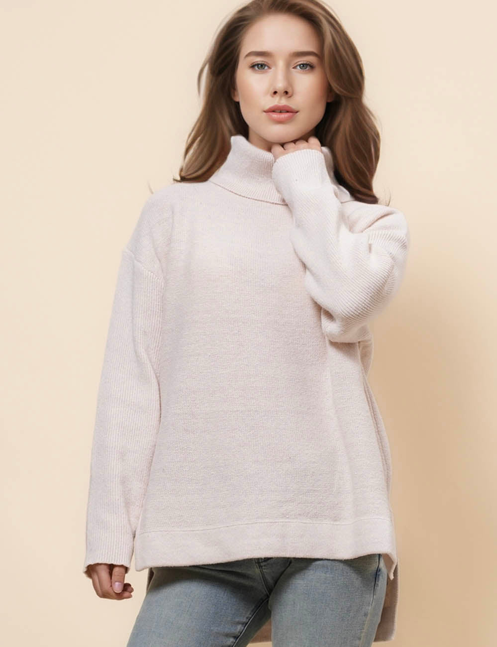 Ladies Mock Neck Relaxed Pullover Sweater SKT41191