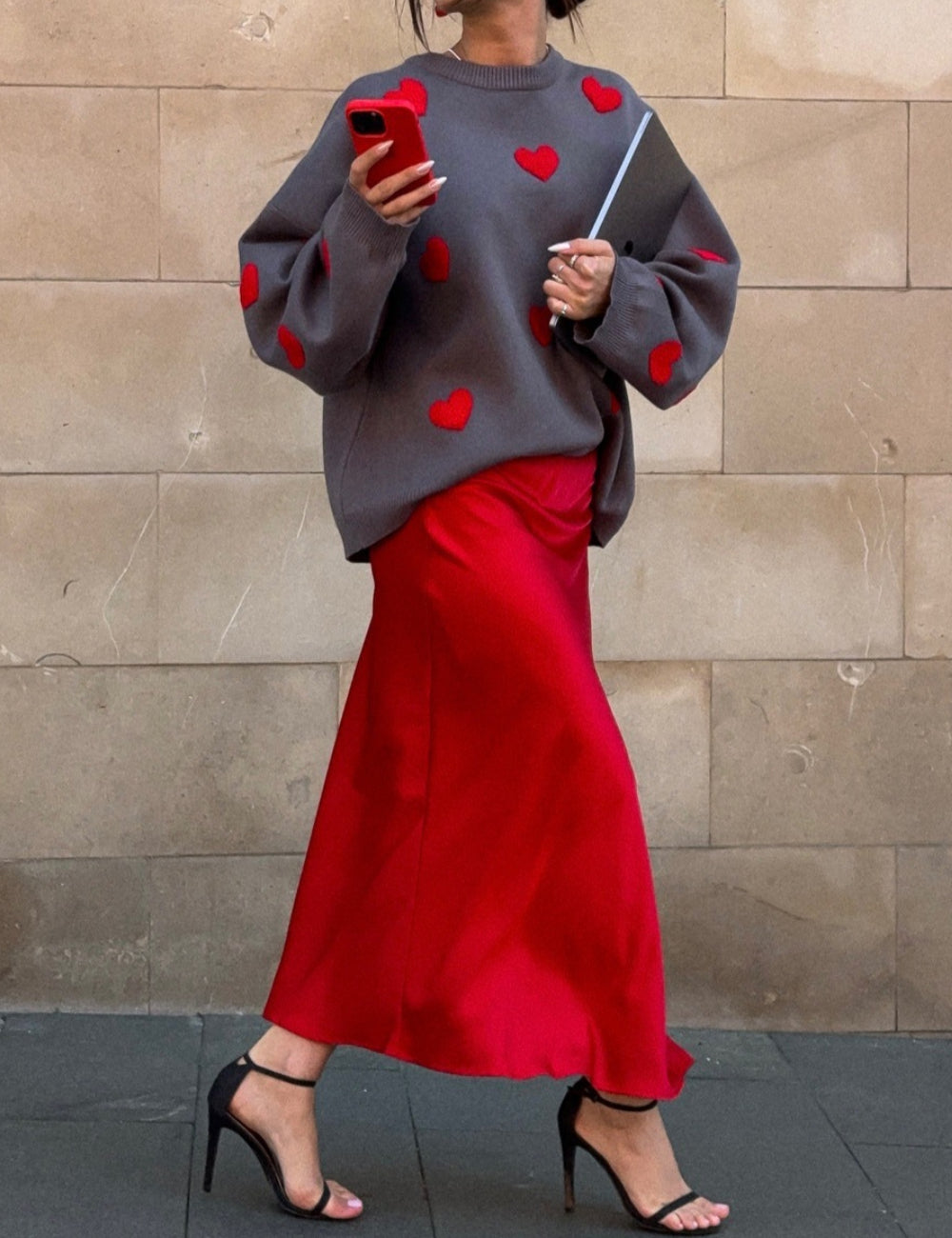Ladies Valentine Heart Knit Pullover Sweater SKT41181