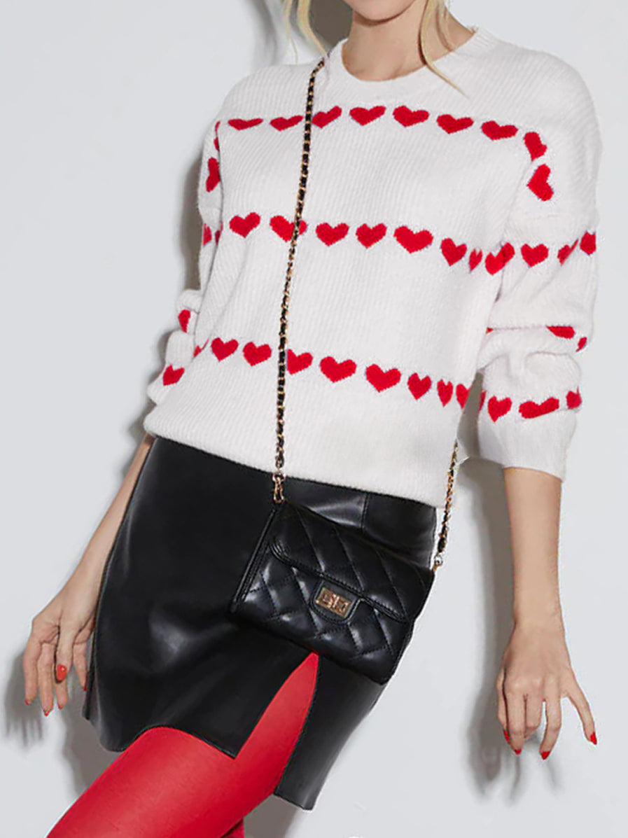 Ladies Valentine Heart Knit Color Block Sweater SKT41170