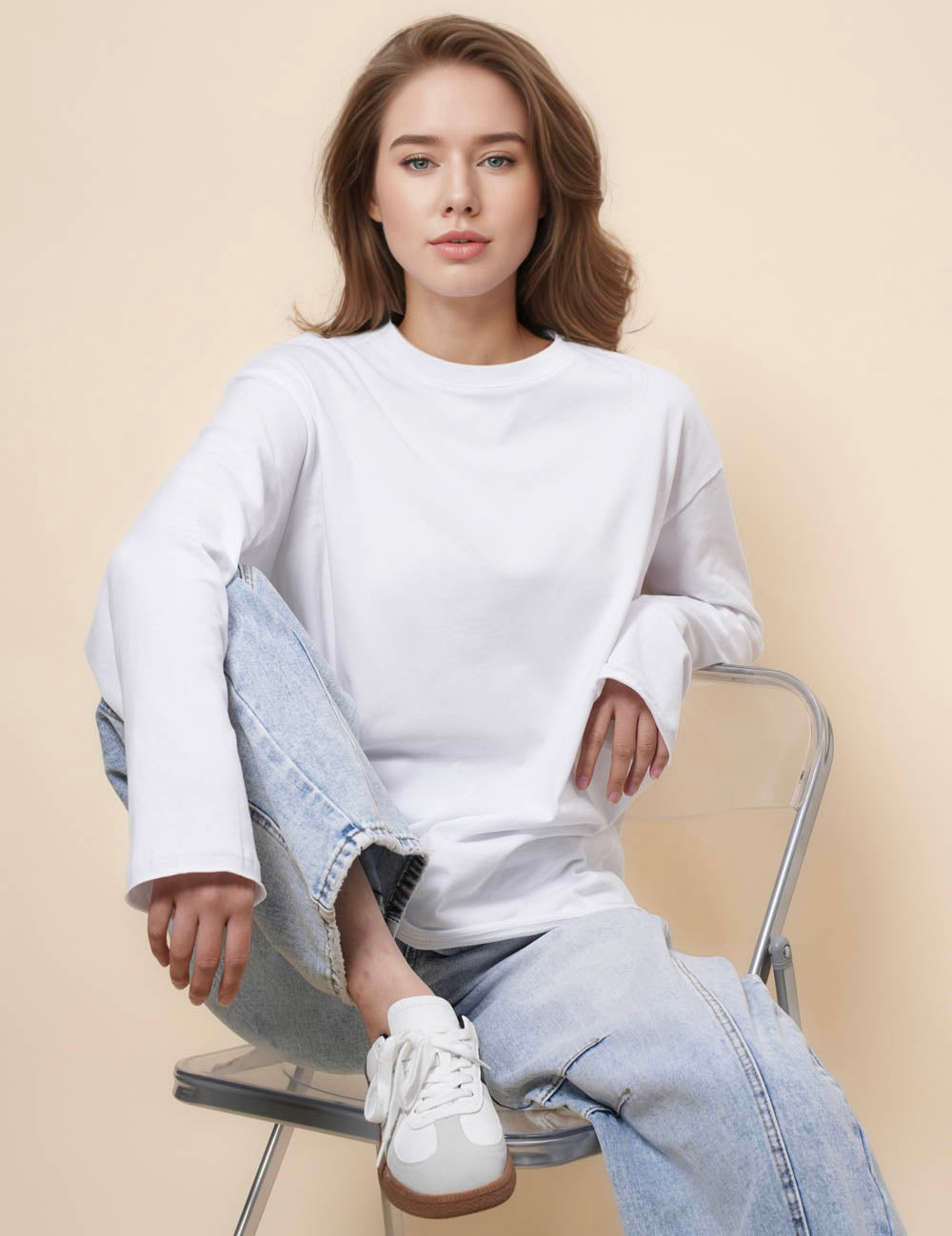 Ladies Solid Color T-Shirt Round Neck Basic Tee SKT41096