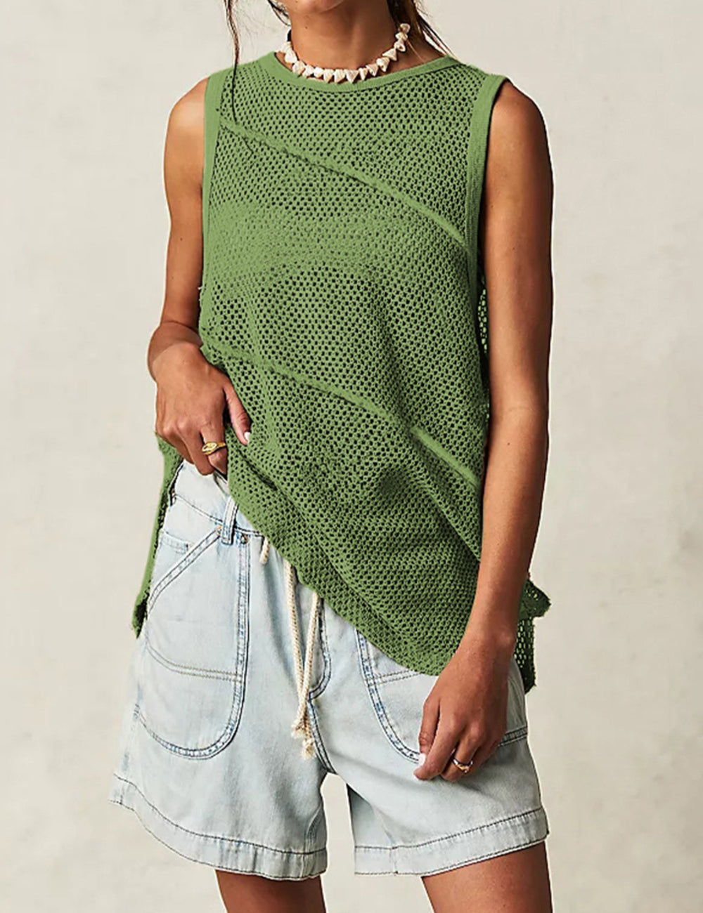 Ladies Solid Color See Through Knit Sleeveless Top SKT41169