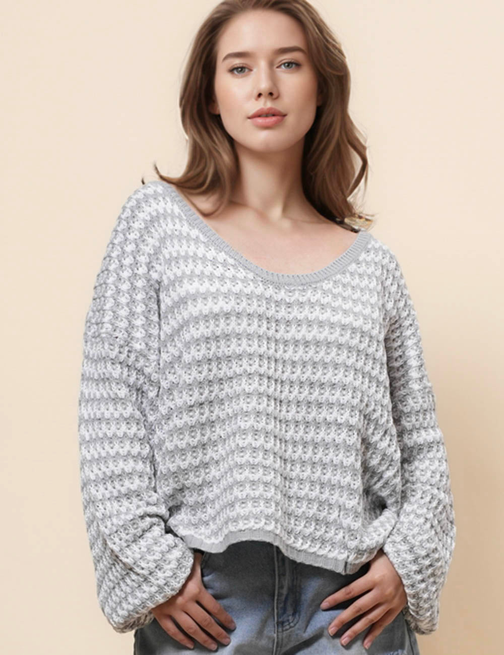 Ladies Color Block Heart Pullover Sweater SKT41179