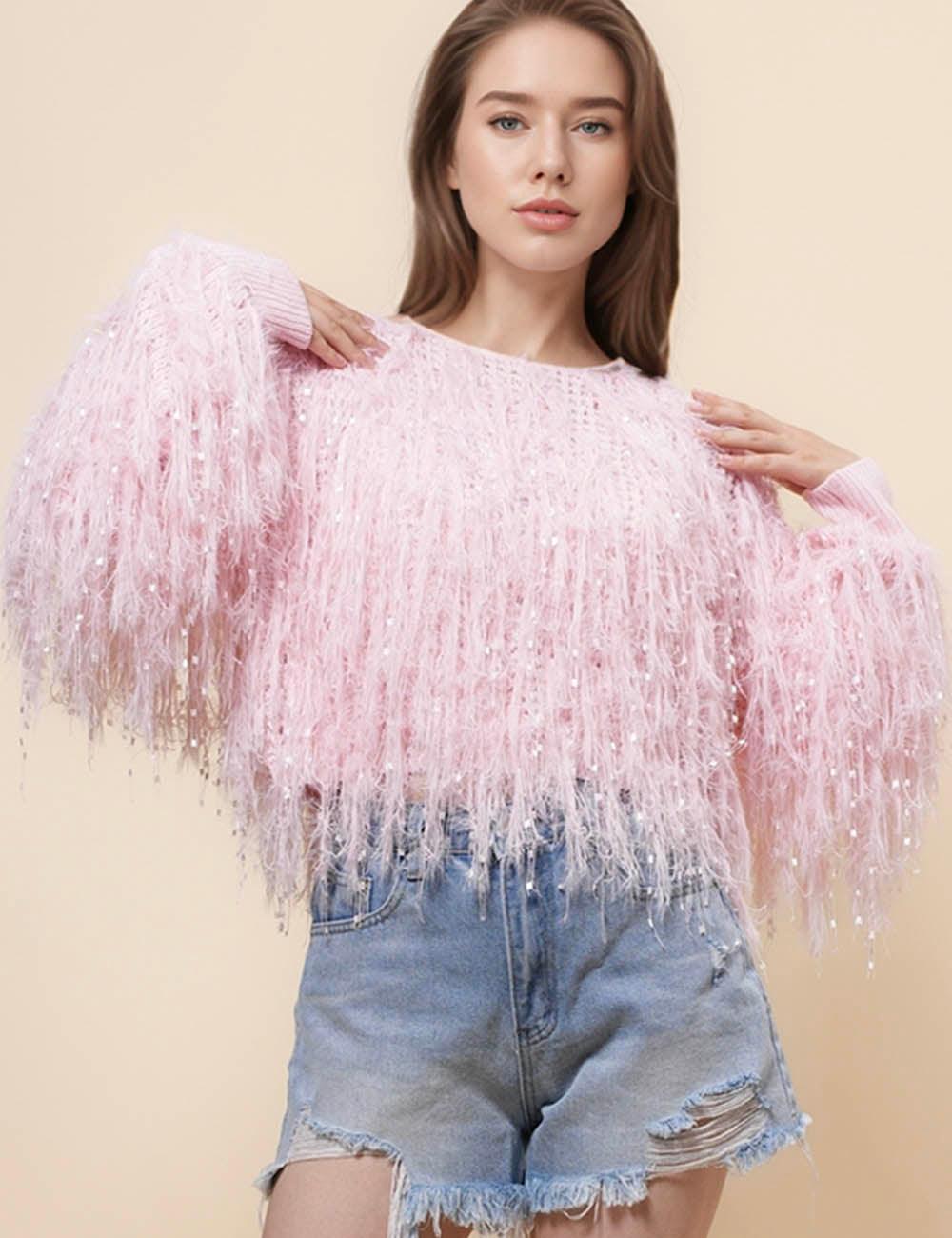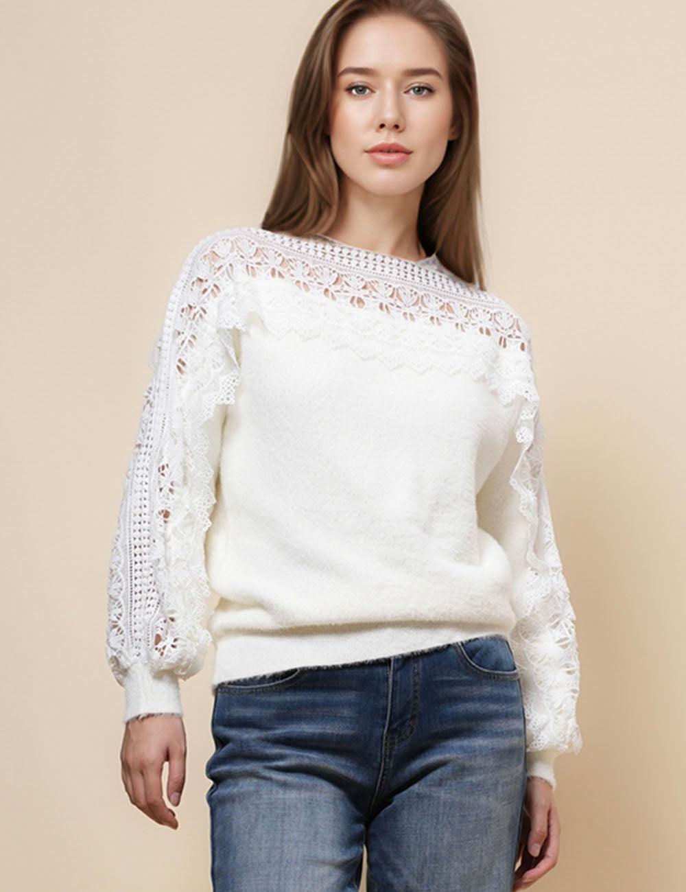 Ladies Faux Mink and Lace Long Sleeves Pullover Sweater SKT4881