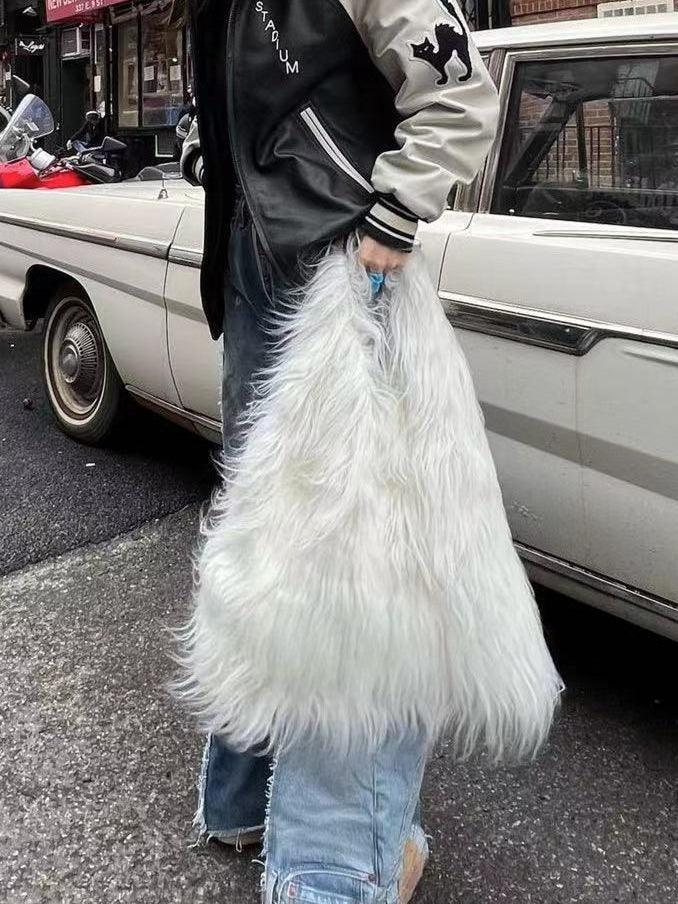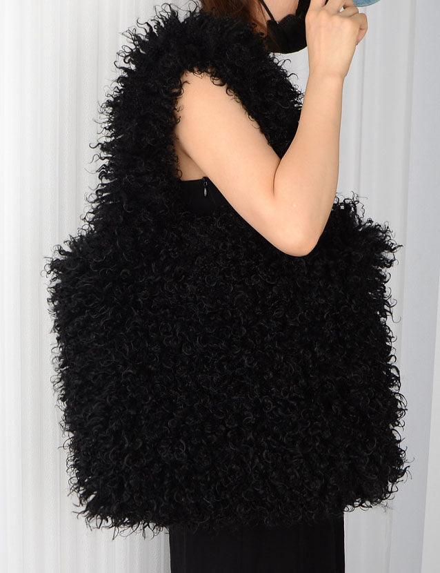 Ladies Faux Mongolian Fur Looking Tote Bag SKAB4092