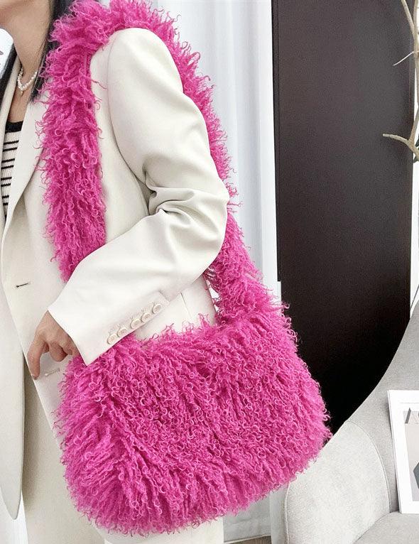 Ladies Faux Mongolian Fur Hand Bag SKABG4093