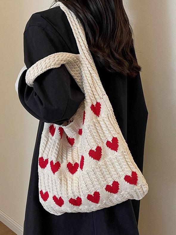 Ladies Knit Heart Shpaed One Shoulder Tote Bag SKAB4109