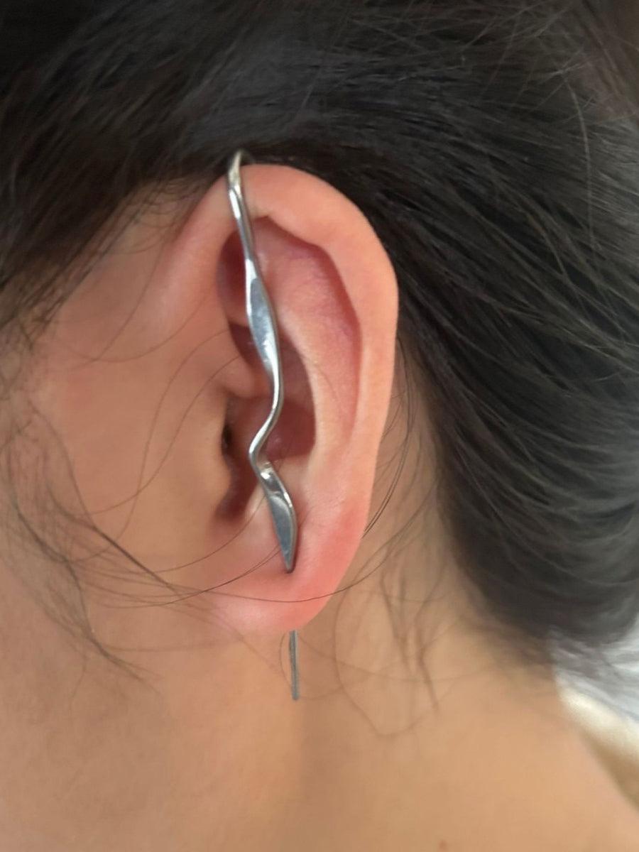 Ladies Stainless Steel Ear Crawler Hook Pin Cuff Earrings SKAJ4152