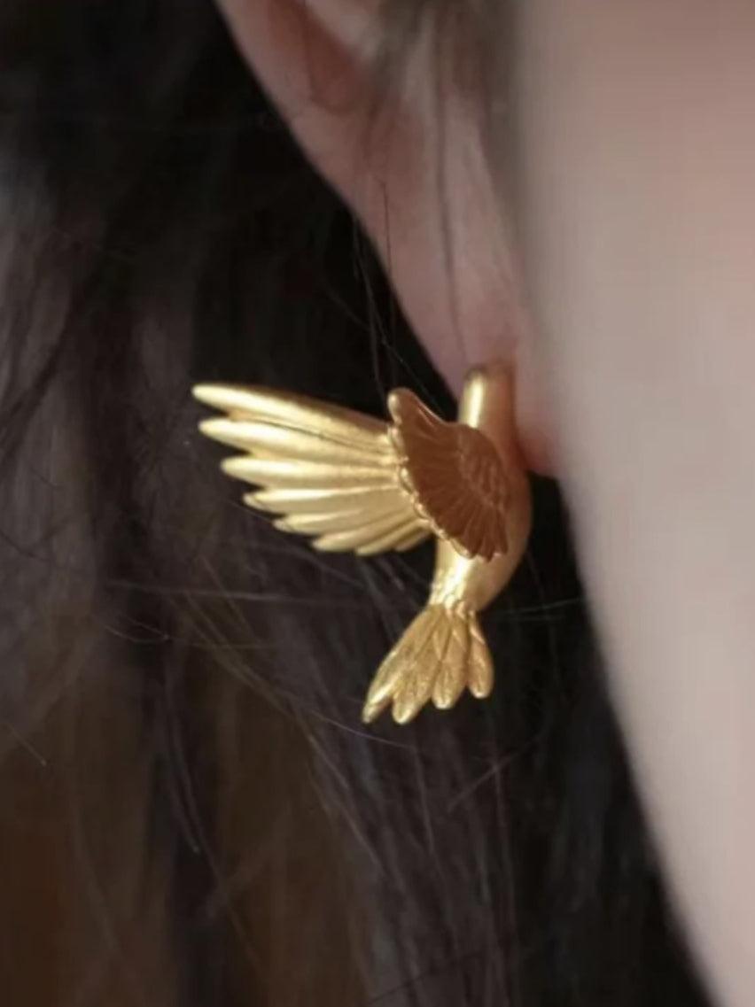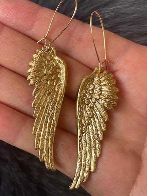 Ladies Vintage Golden Silver Angle Wings Pandent Earrings SKAJ4149