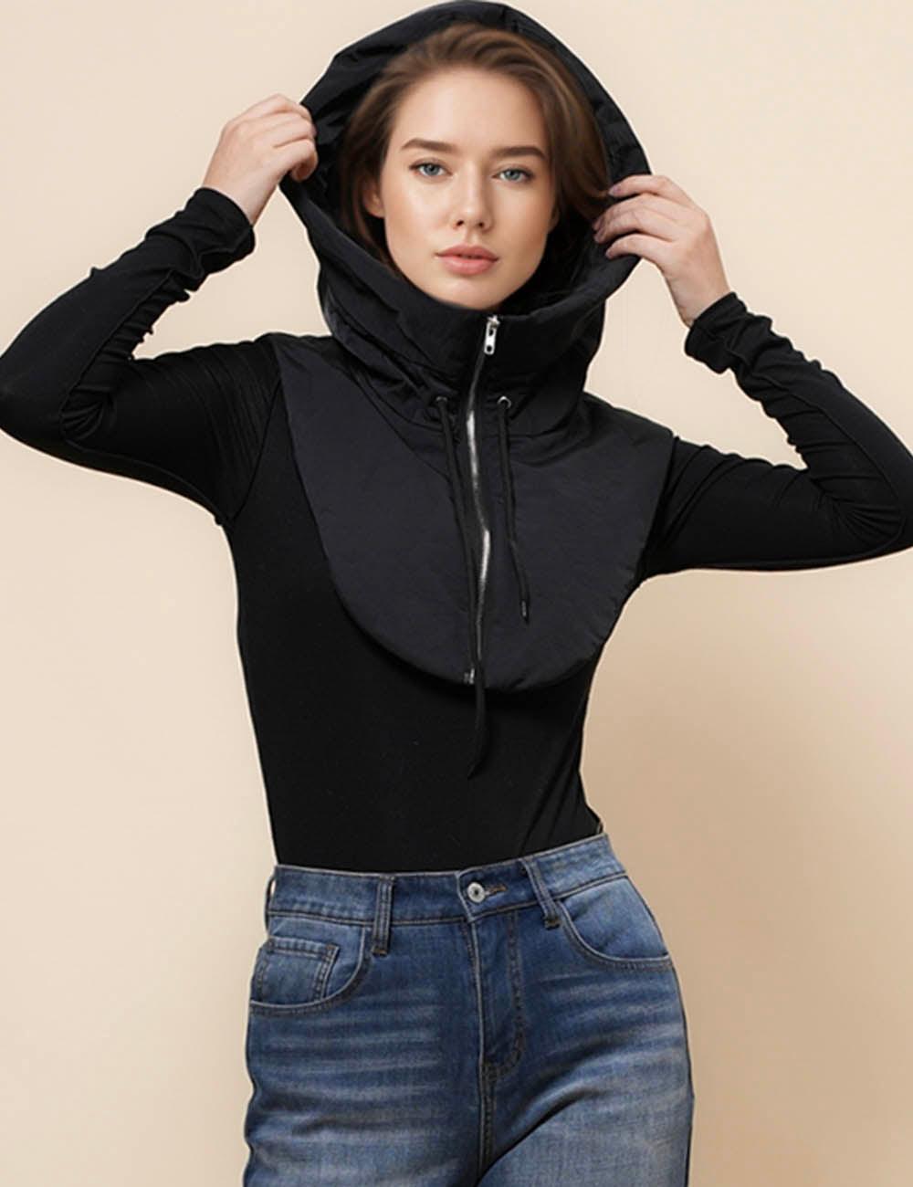 Ladies Puff Cotton Padded Faux Hooded Collar Vest SKT4977