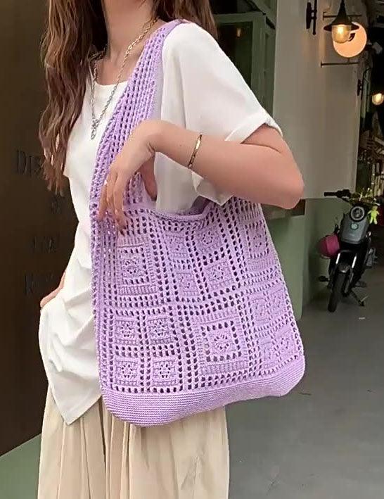 Ladies Square Knit Solid Color Tote Bag SKAB4110