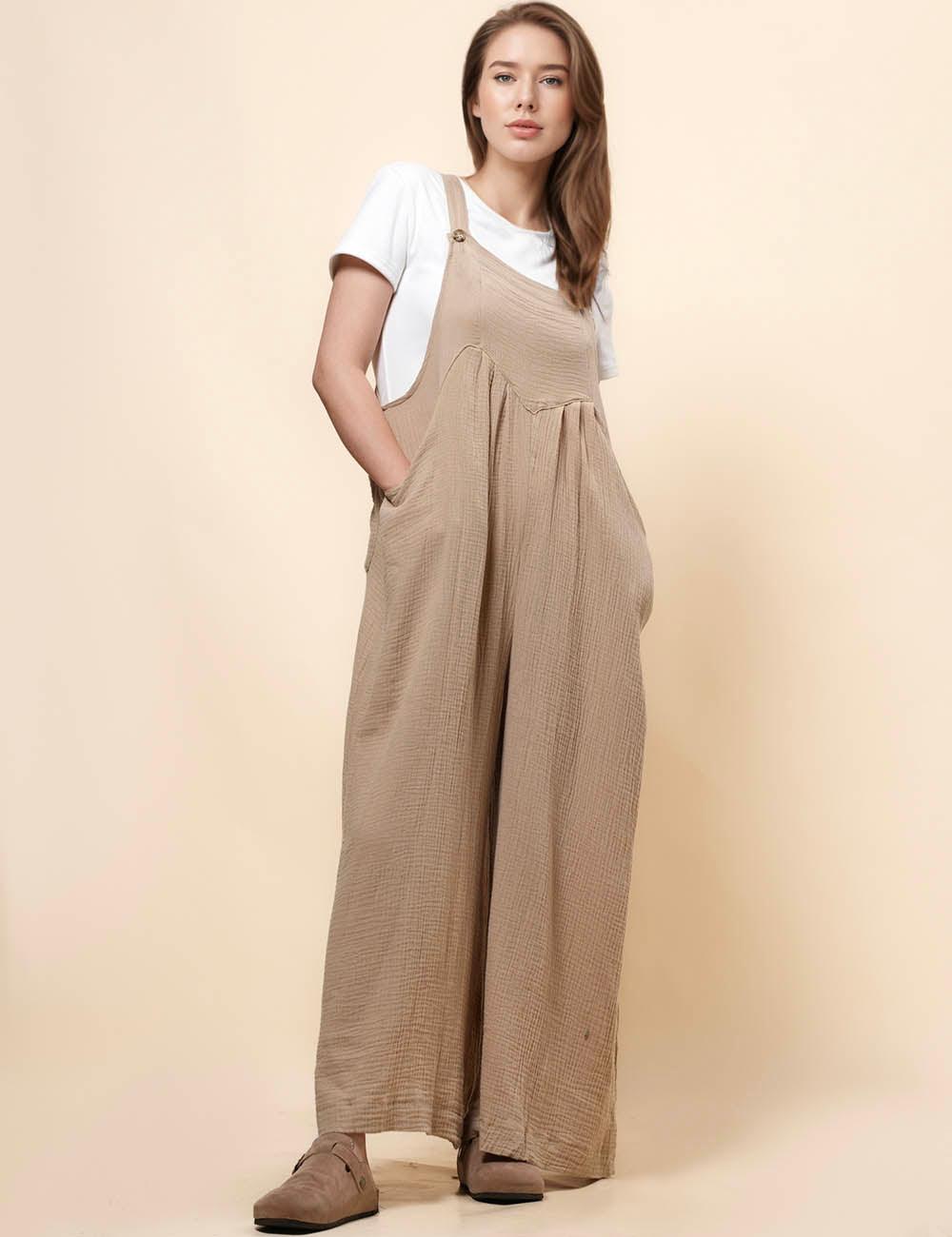 Ladies Botton Strape Overall Relaxed Gauzy Jumpsuits SKJ162