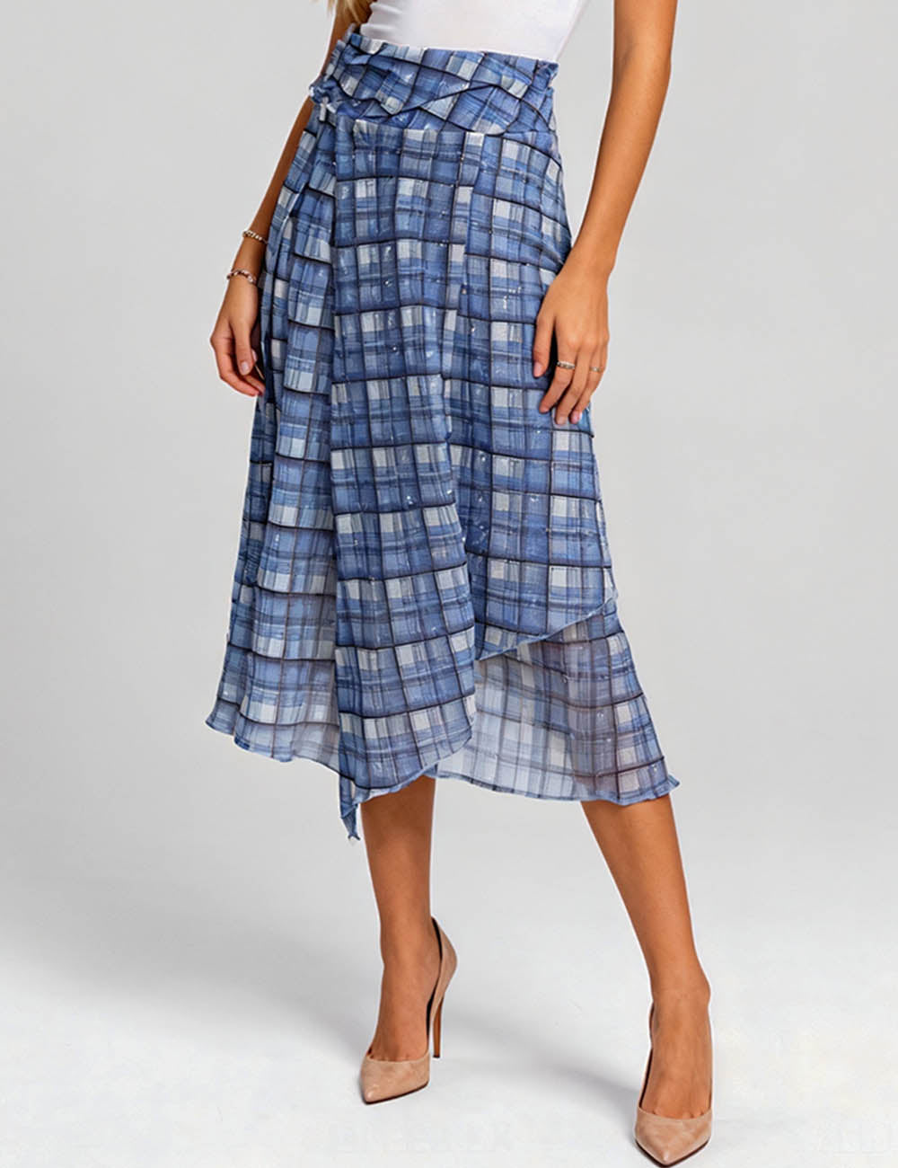 Ladies Satin Elastic Waist Mesh Tiered Ruffle Mini Skorts