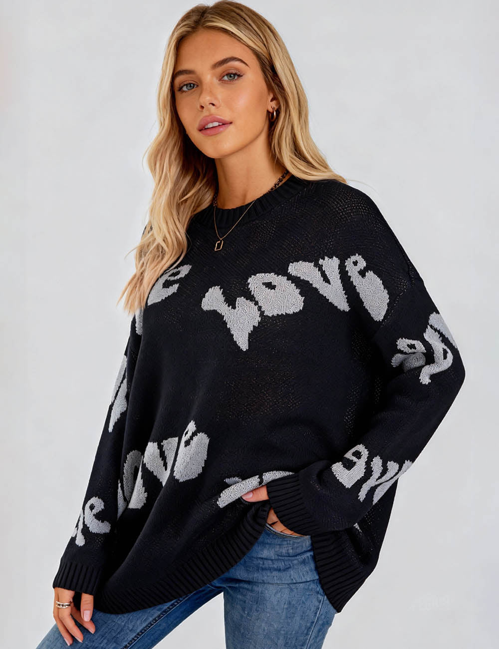 Ladies Valentine's Love Letter Pullover Round Neck Sweater