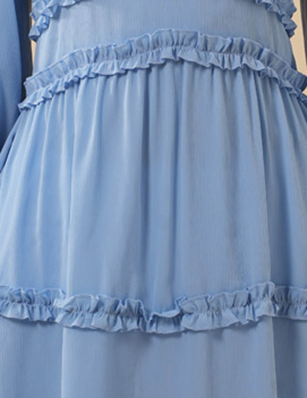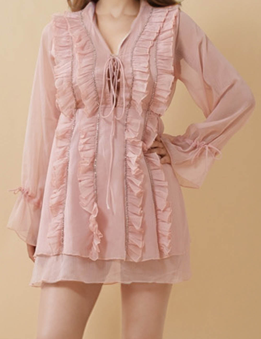 Ladies Deep V-Neck Solid Color Ruffle Long Sleeves Mini Dress
